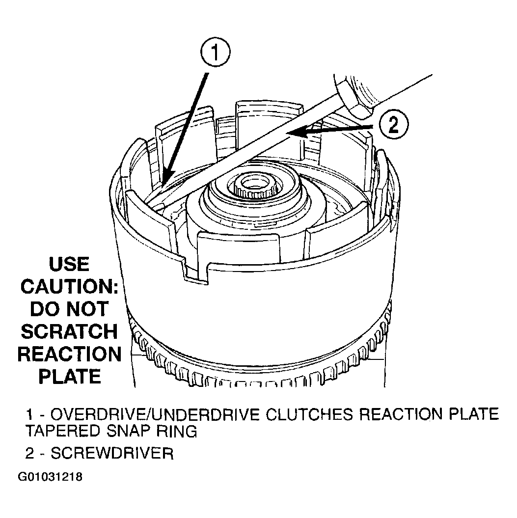 ). The OD/UD clutches reaction plate has a step on both sides. Install the OD/UD clutches reaction plate tapered step side up.
