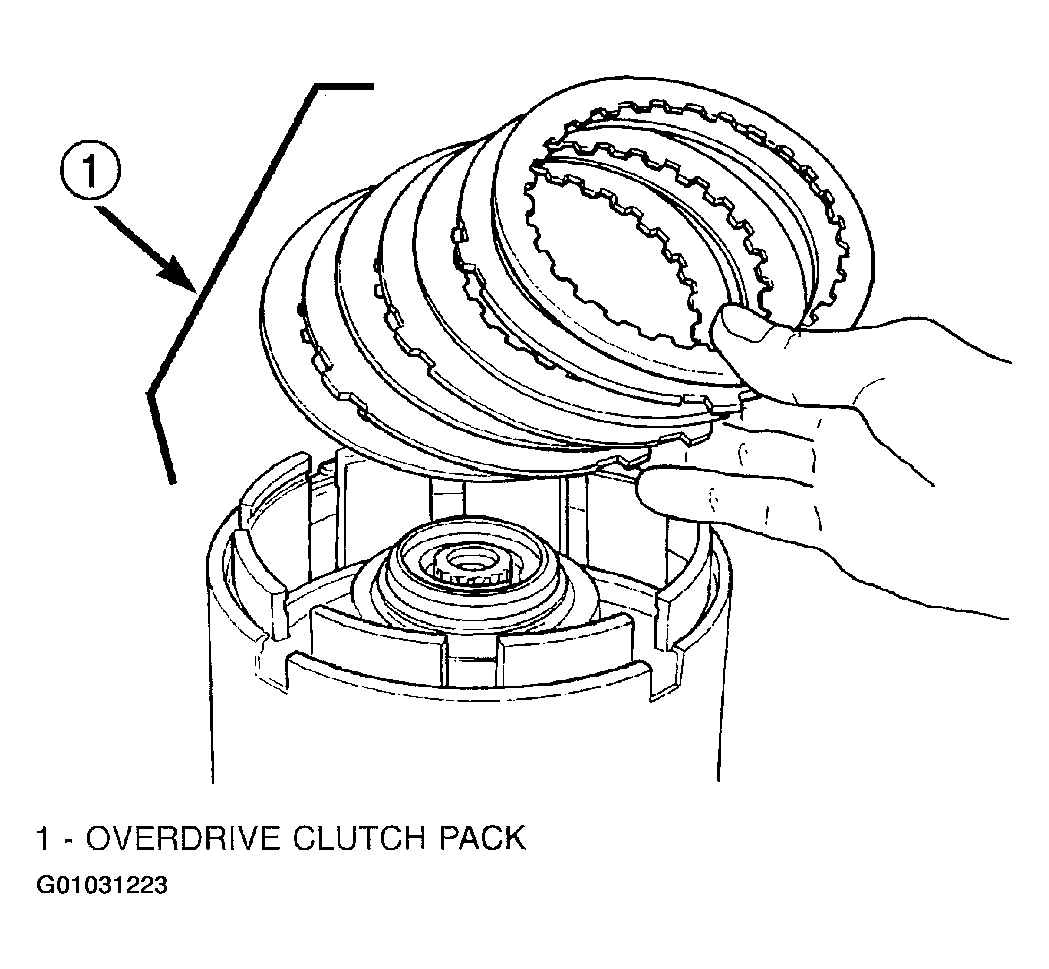 - Take average of four measurements and compare with OD clutch pack clearance specification. The overdrive (OD) clutch pack clearance is 1.07-3.25 mm (0.042-0.128 in.).