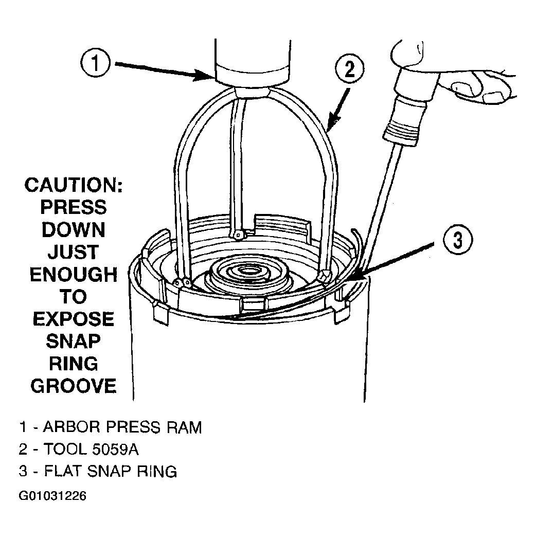 - Using Tool 5059A and an arbor press, install the UD spring retainer and snap ring. (Fig 10 and Fig 11