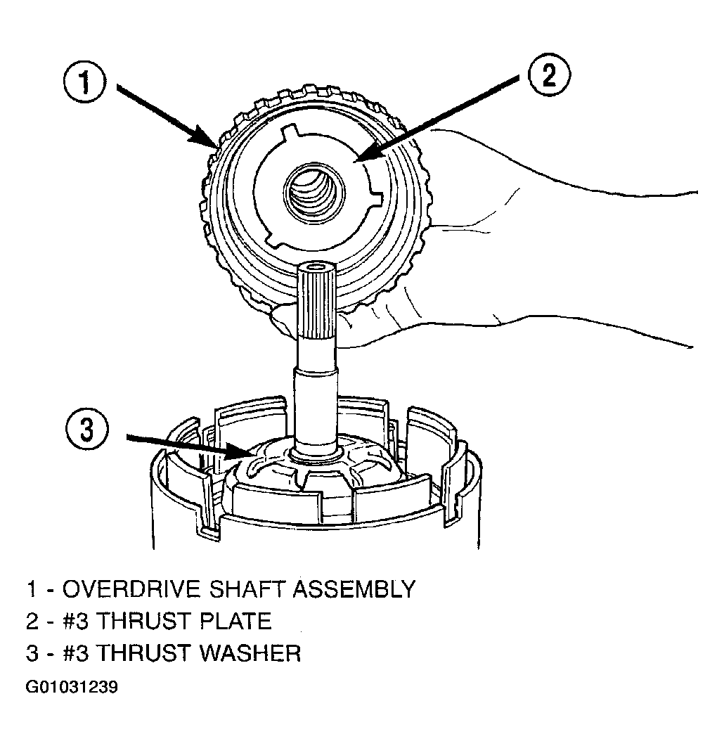 - Install the #3 thrust plate to the bottom of the overdrive shaft assembly. Retain with petrolatum or transmission assembly gel. (Fig 37).