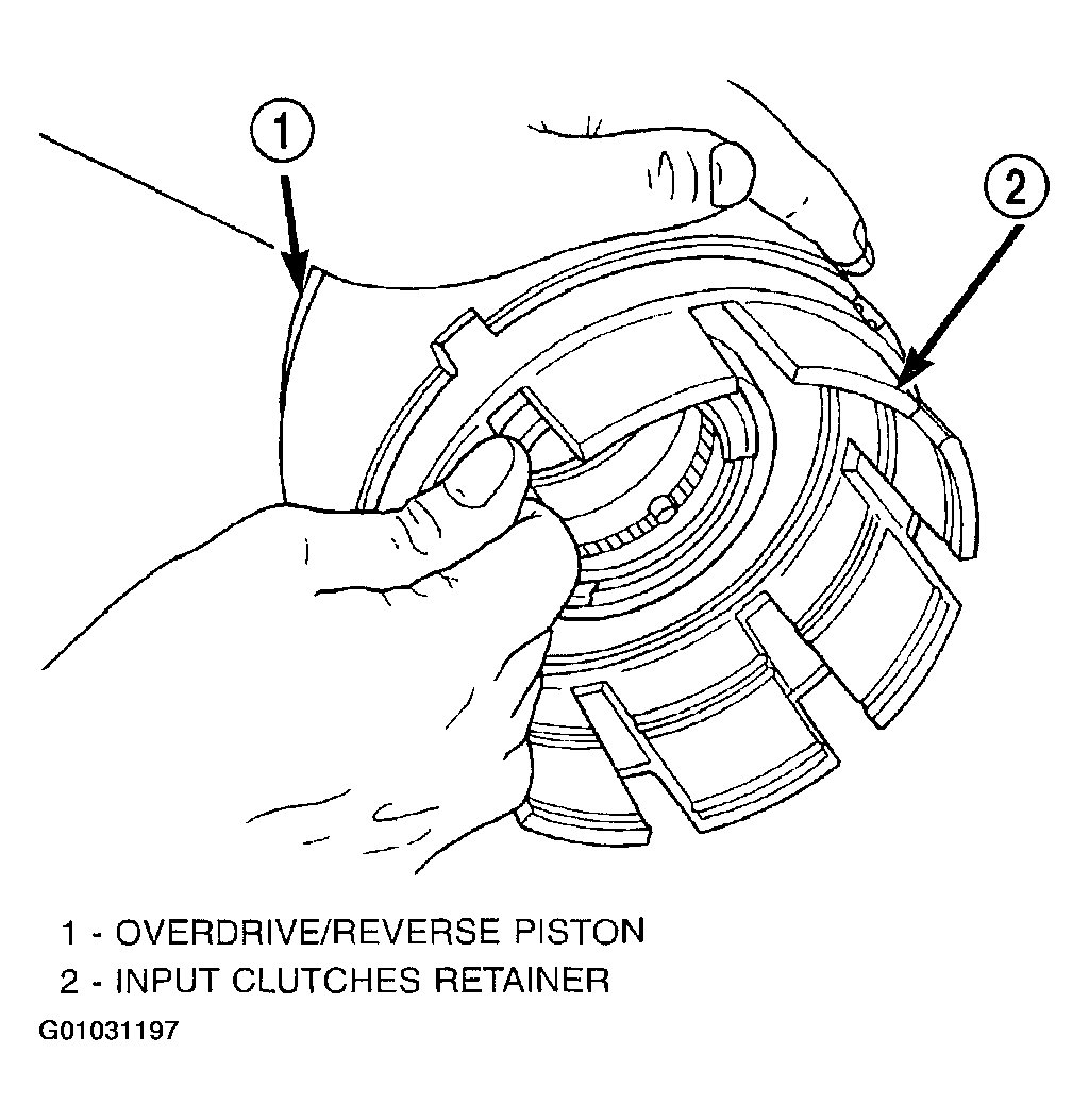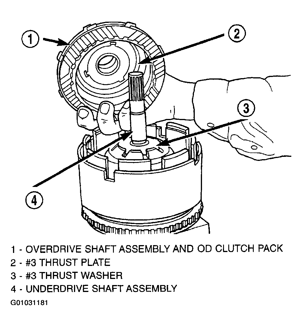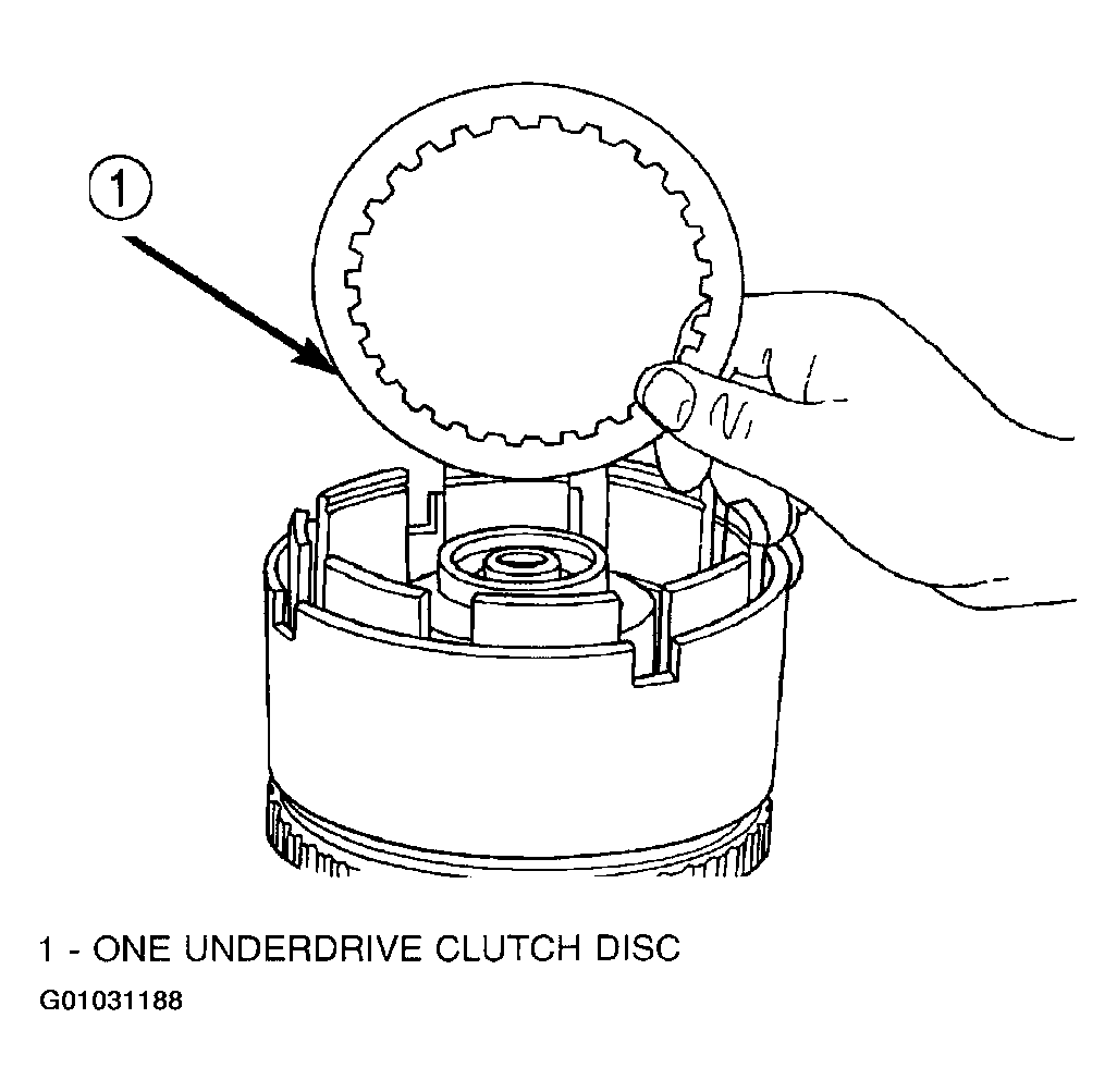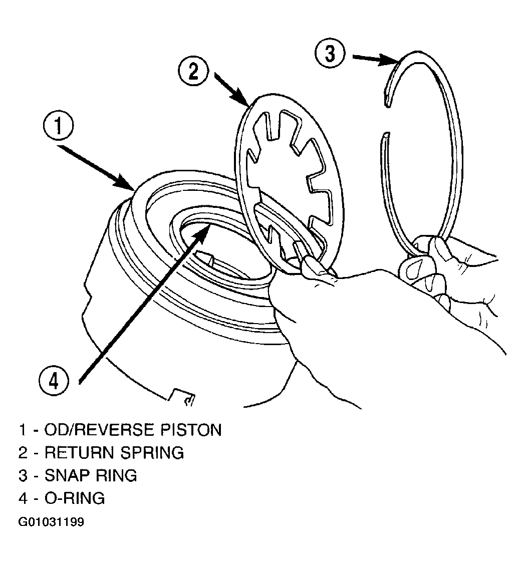 The OD/UD clutch reaction plate has a step on both sides. Install the OD/UD clutches reaction plate tapered step side up.