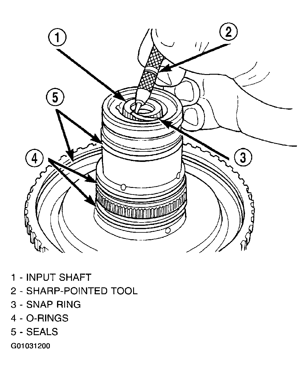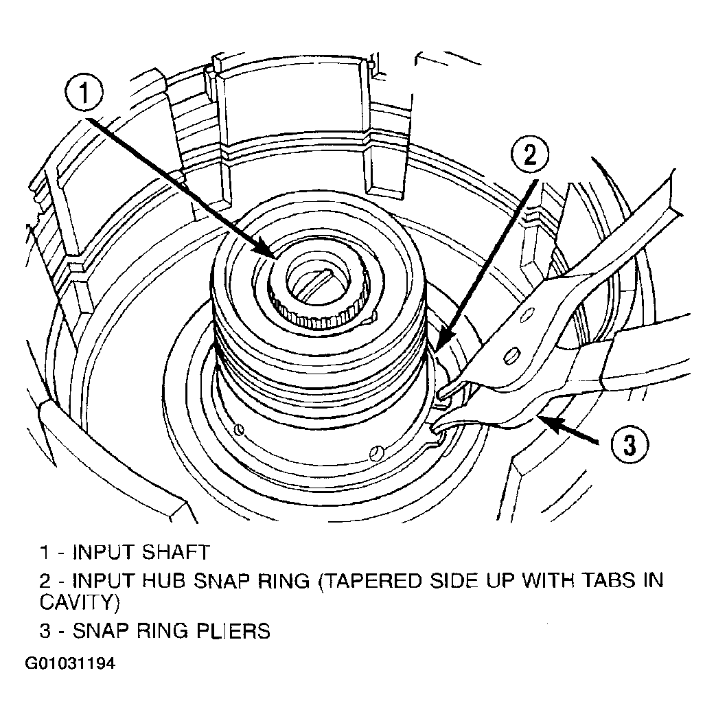 - Remove input shaft to input clutch hub snap ring. (Fig 28).