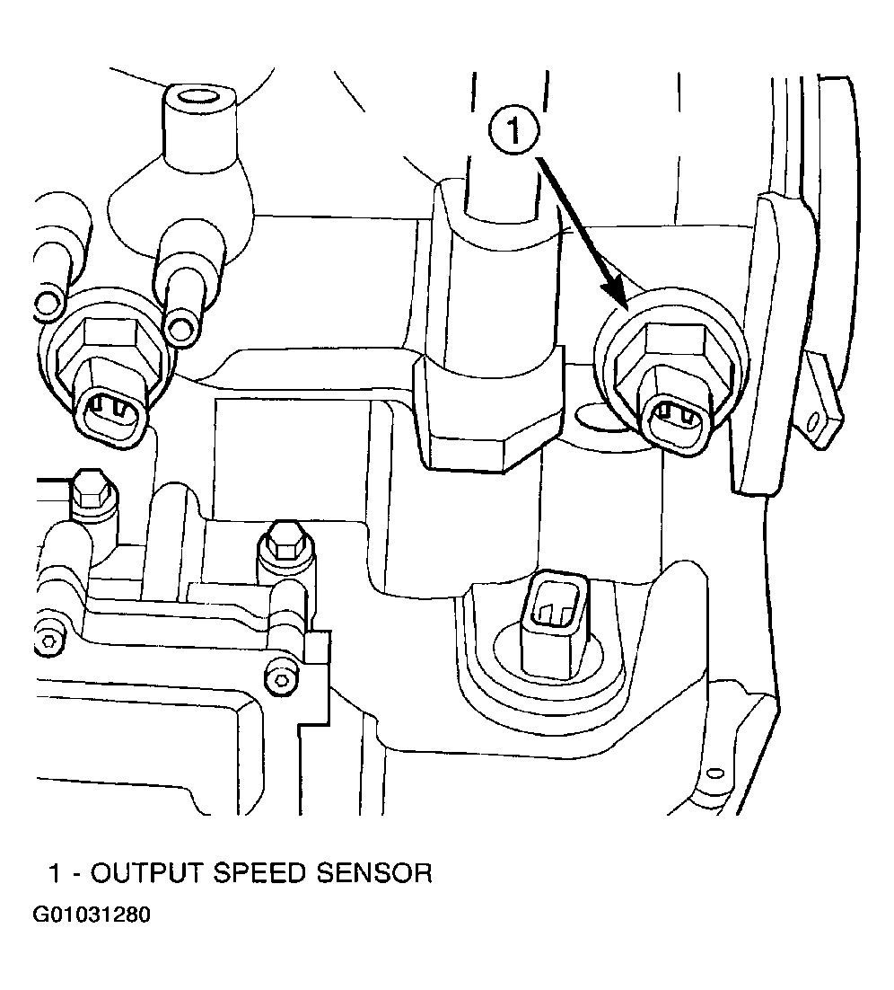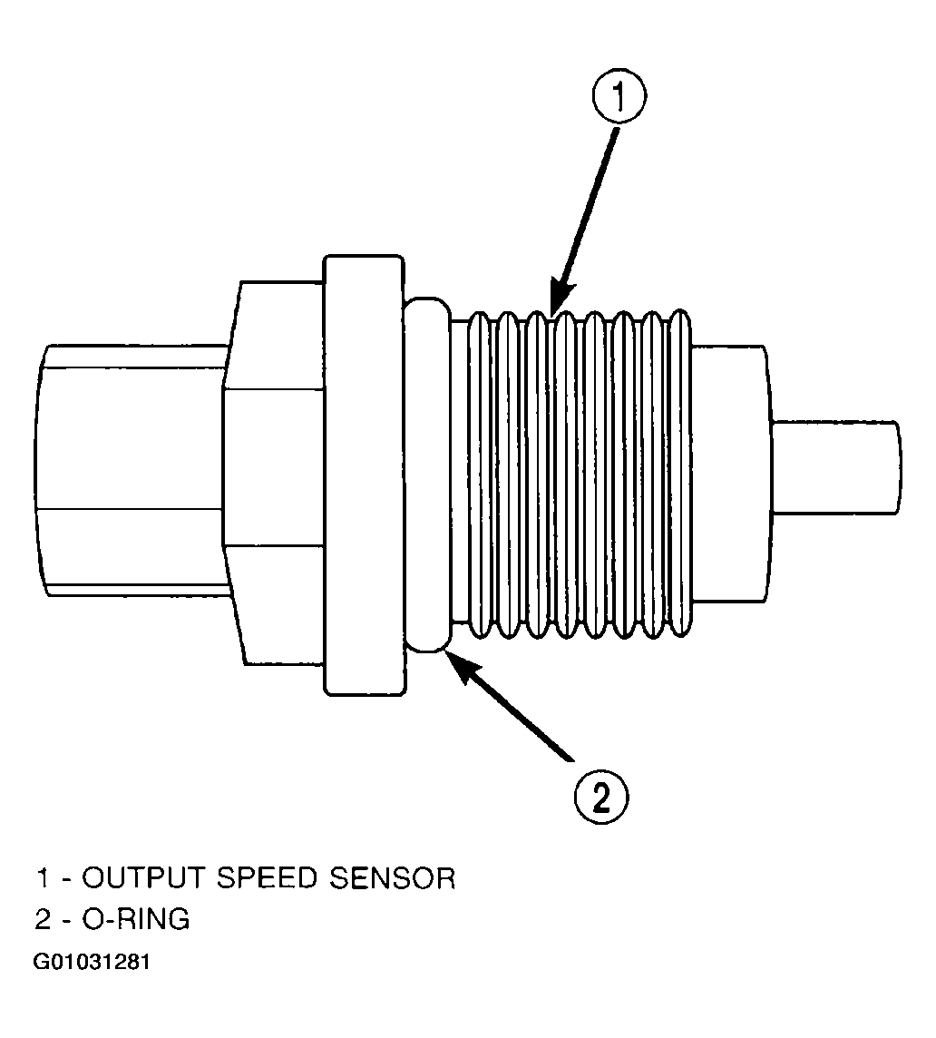 The Output Speed Sensor is a two-wire magnetic pickup device that generates an AC signal as rotation occurs. It is threaded into the transaxle case (Fig 1), sealed with an "O" ring (Fig 2), and is considered a primary input to the Transmission Control Module (TCM).
