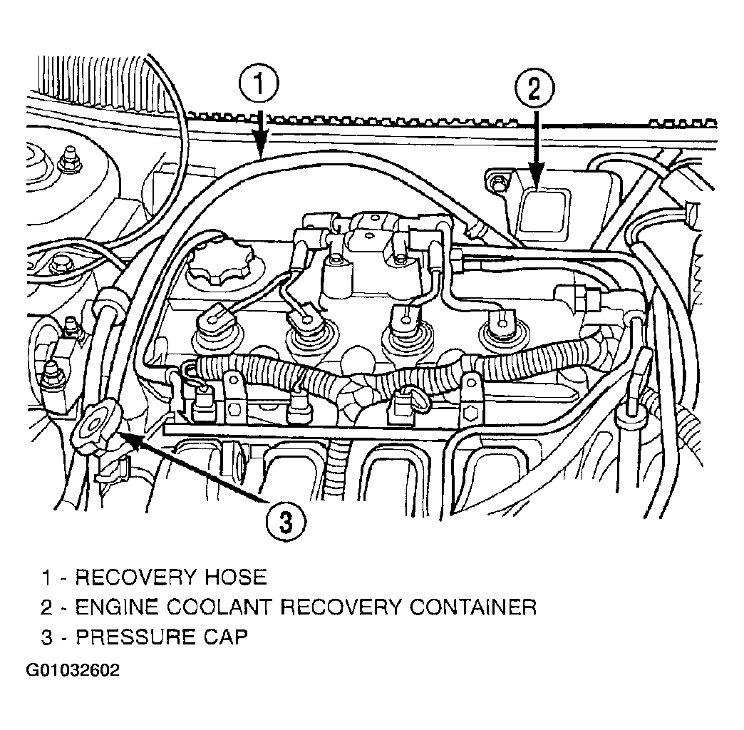 - Connect recovery hose to water outlet connector/thermostat housing. (Figure).