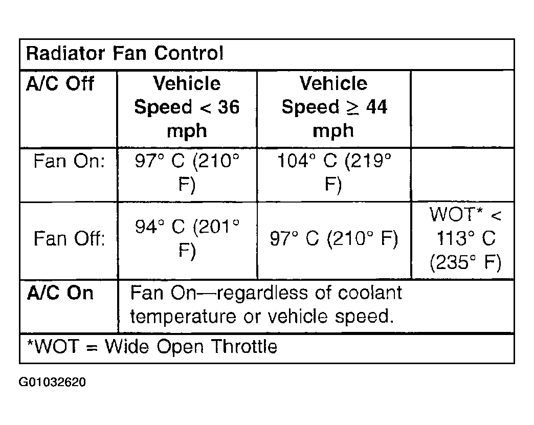 If the radiator fan is inoperative or a Diagnostic Trouble Code (DTC) related to fan control has been set, refer to Appropriate Diagnostic Information for complete diagnostic procedures.