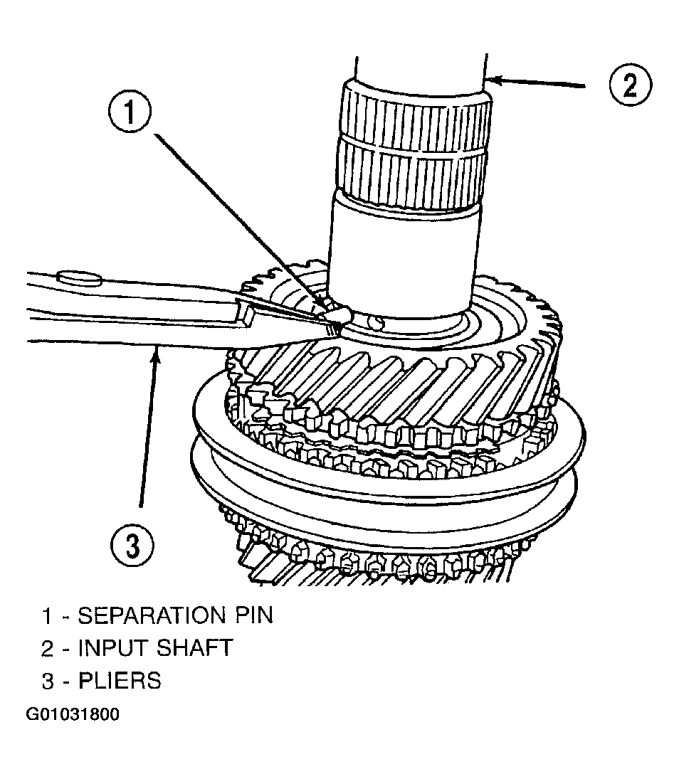 - Install 4-5 split thrust washer separation pin. (Fig 3).