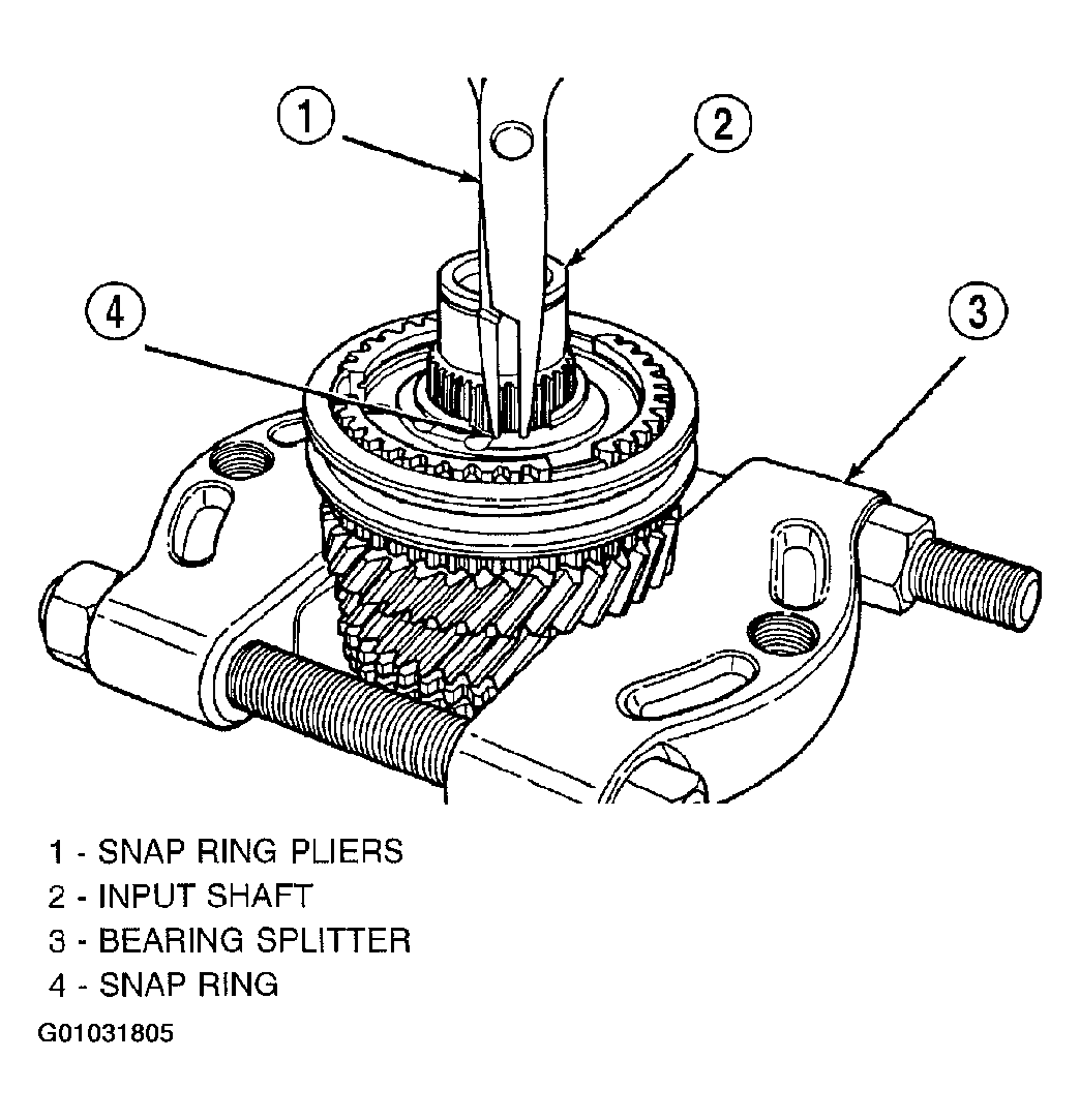 - Install 3-4 synchronizer snap ring into slot on input shaft.