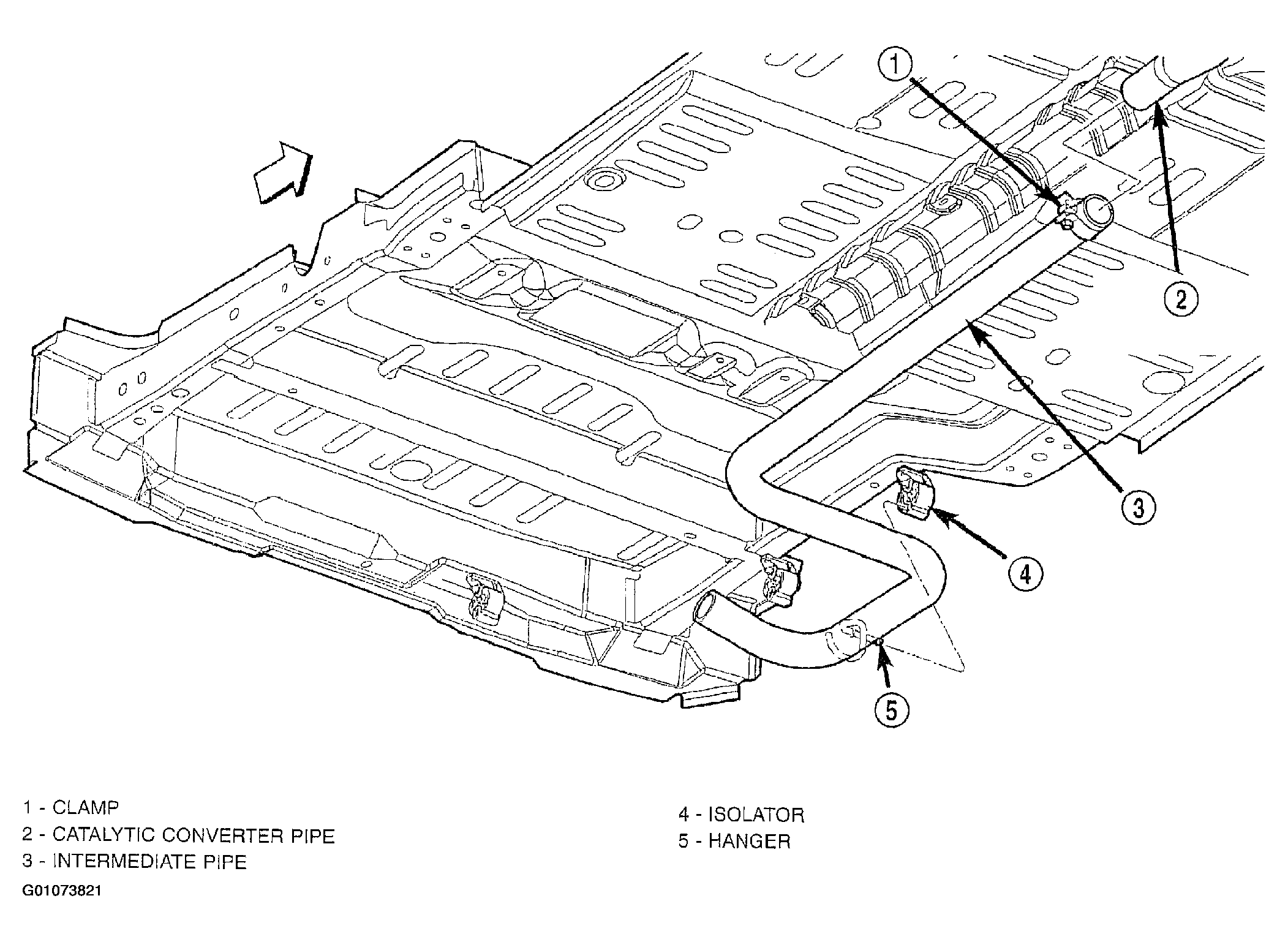 - Install intermediate pipe and the isolator supports to the underbody. See Fig 1 .
