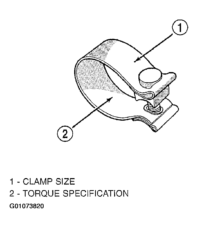 - Working from the front of system; align each component to maintain position and proper clearance with underbody parts. See Figure . For clearance specifications, see SPECIFICATIONS . Tighten band clamp to 47 N.m (35 ft. lbs). See Fig 1 .