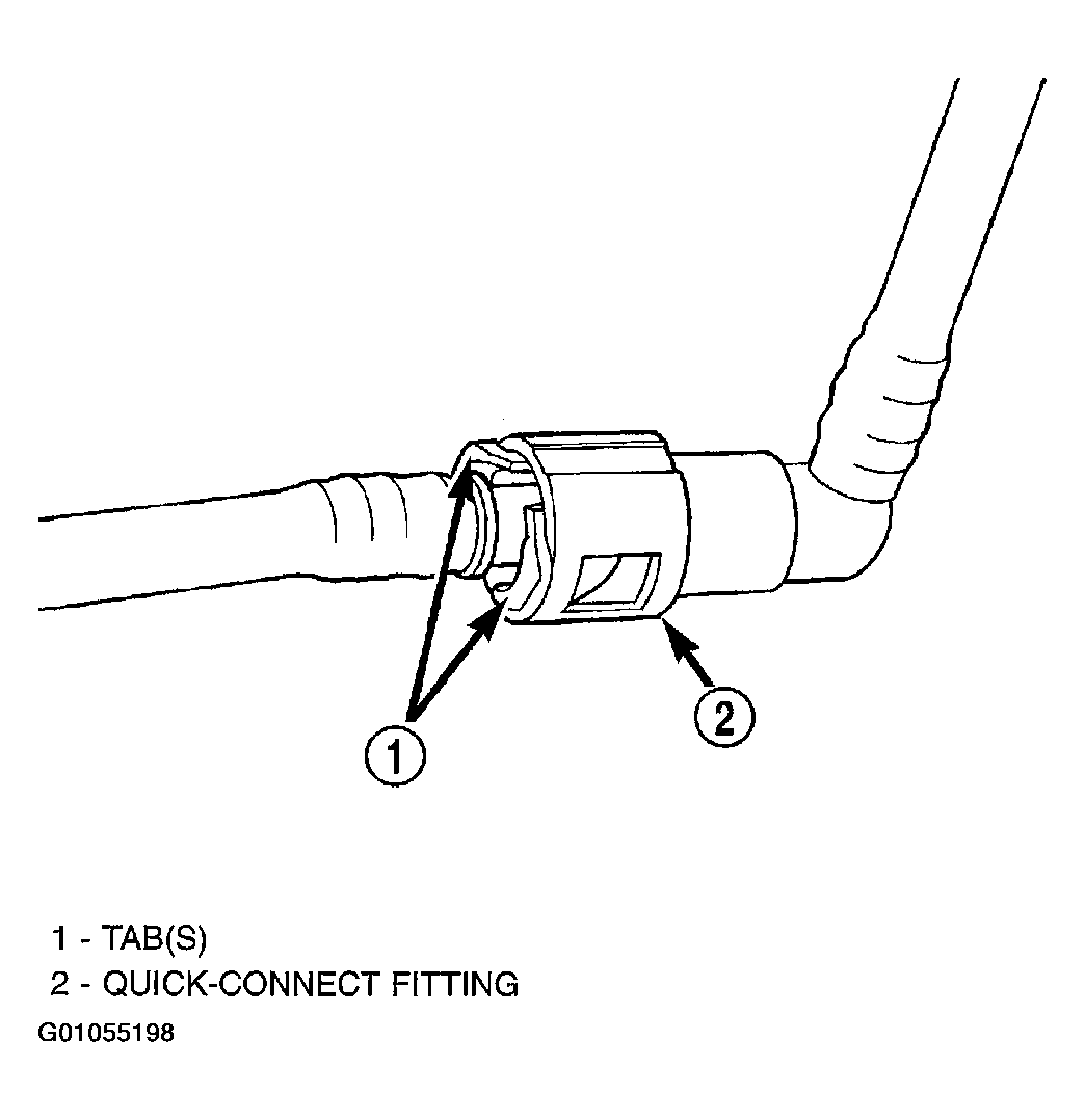 - To disconnect quick-connect fitting, squeeze plastic retainer tabs (Figure) against sides of quick-connect fitting with your fingers. Tool use is not required for removal and may damage plastic retainer. Pull fitting from fuel system component being serviced. The plastic retainer will remain on component being serviced after fitting is disconnected. The O-rings and spacer will remain in quick-connect fitting connector body.