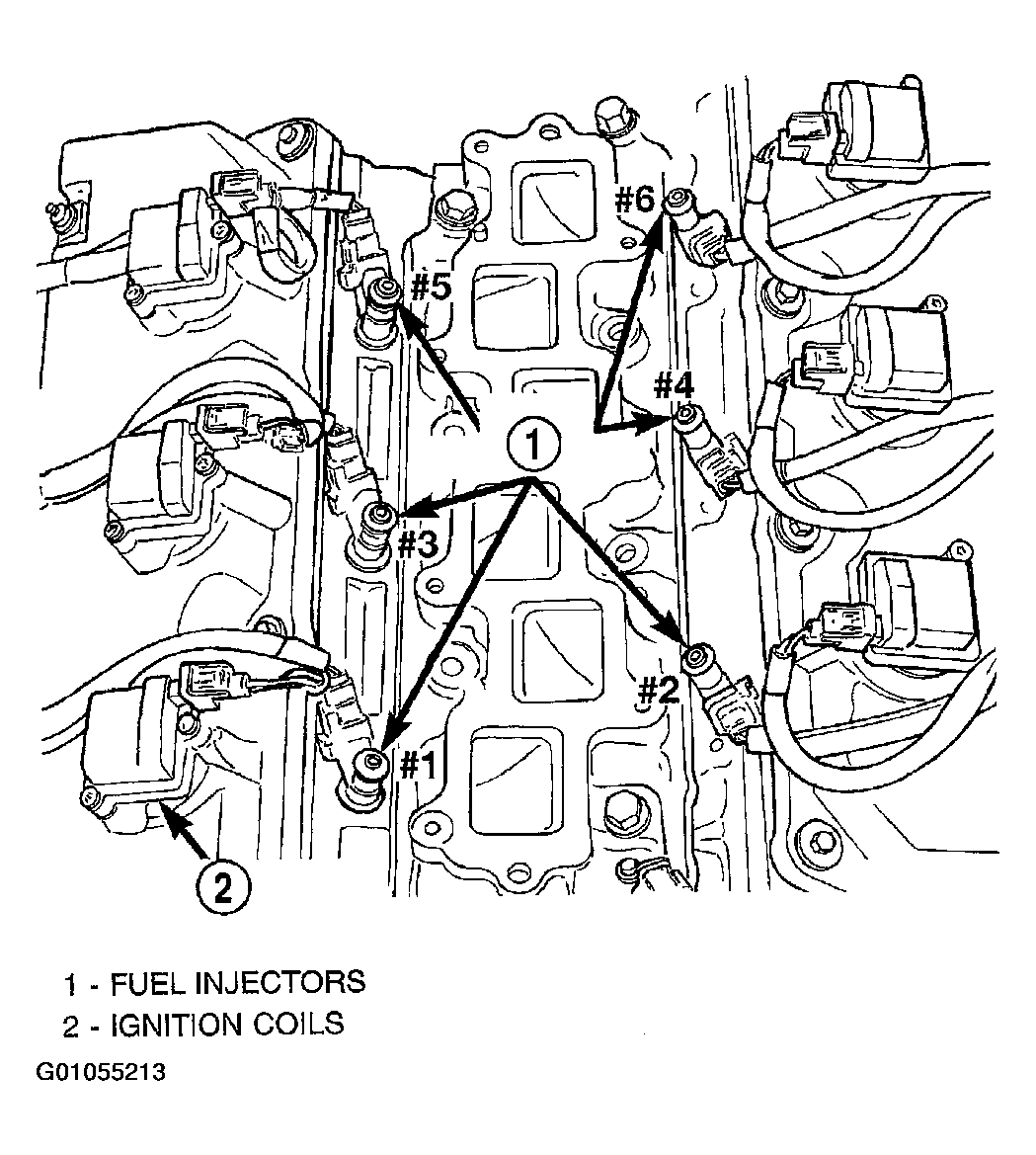 The fuel injectors are electrical solenoids (Fig 1). The injectors are positioned in the cylinder heads with the nozzle ends directly above the intake valve port (Fig 2). Fuel injectors are not interchangeable between engines.