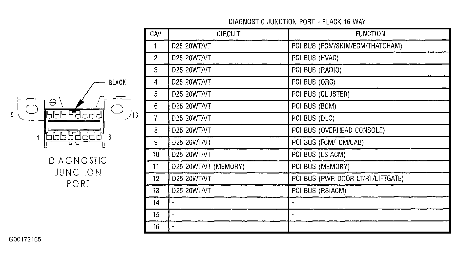 1. Turn ignition on. Using scan tool, attempt to communicate with Occupant Restraint Controller (ORC), Controller Anti-Lock Brake (CAB) and Body Control Module (BCM). If scan tool identifies or communicates with any module, go to next step. If scan tool does not identify or communicate with any module, go to PCI BUS COMMUNICATION FAILURE .