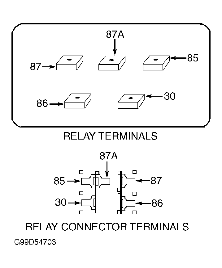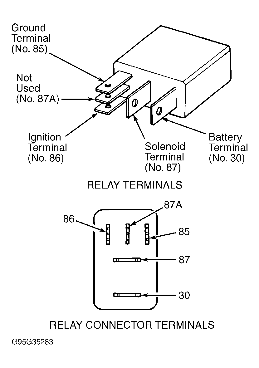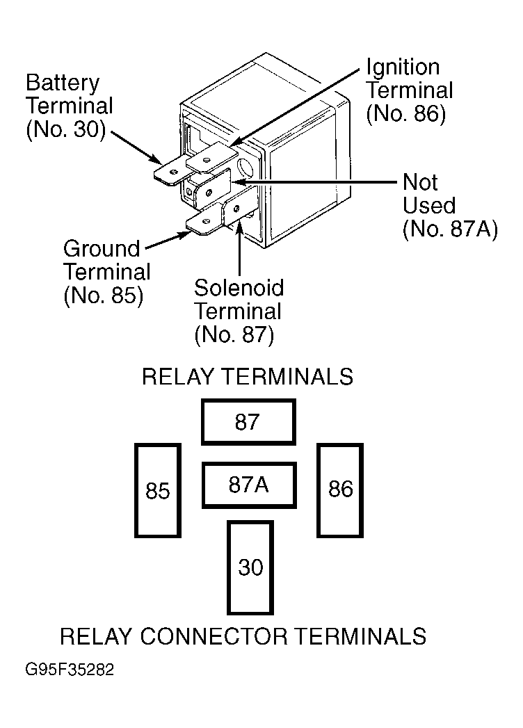 2. The relay normally closed terminal (87A) is connected to terminal 30 in the de-energized position, but is not used for this application. Go to next step.