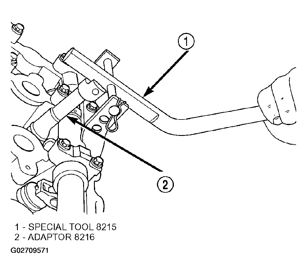 - Using Special Tools 8215 and 8216 Adaptor, depress valve spring only enough to install rocker arm (Figure).