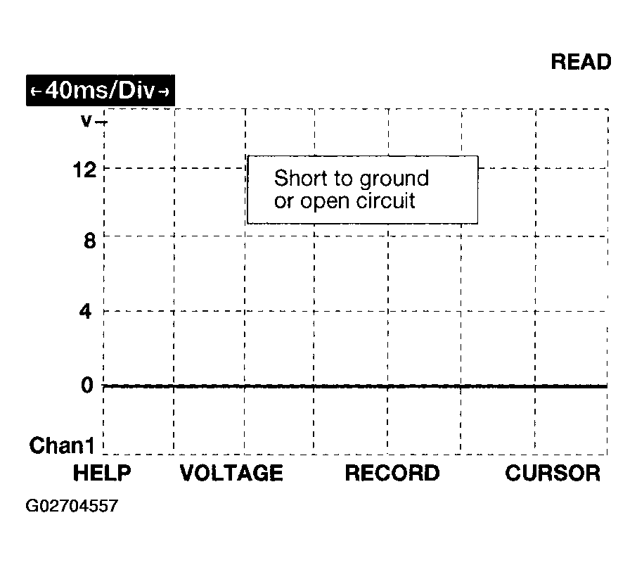 The bus messages are transmitted at a rate averaging 10800 bits per second. Since there is only voltage present when the modules transmit and the message length is only about 500 milliseconds, it is ineffective to try and measure the bus activity with a conventional voltmeter. The preferred method is to use the DRBIII® lab scope. The 12v square wave selection on the 20-volt scale provides a good view of the bus activity. Voltage on the bus should pulse between zero and about seven and half volts. Refer to Fig 1, Fig 2 and Fig 3 for some typical displays.