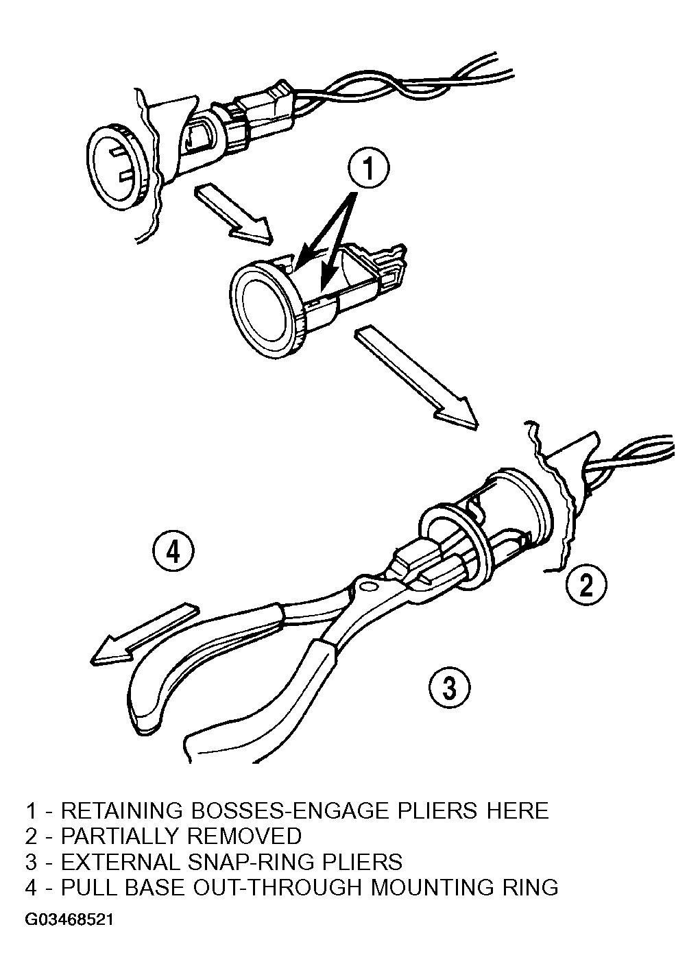 - Pull out the base through mounting ring by gently rocking pliers. A tool can be made to do the same. Refer to (Fig 2