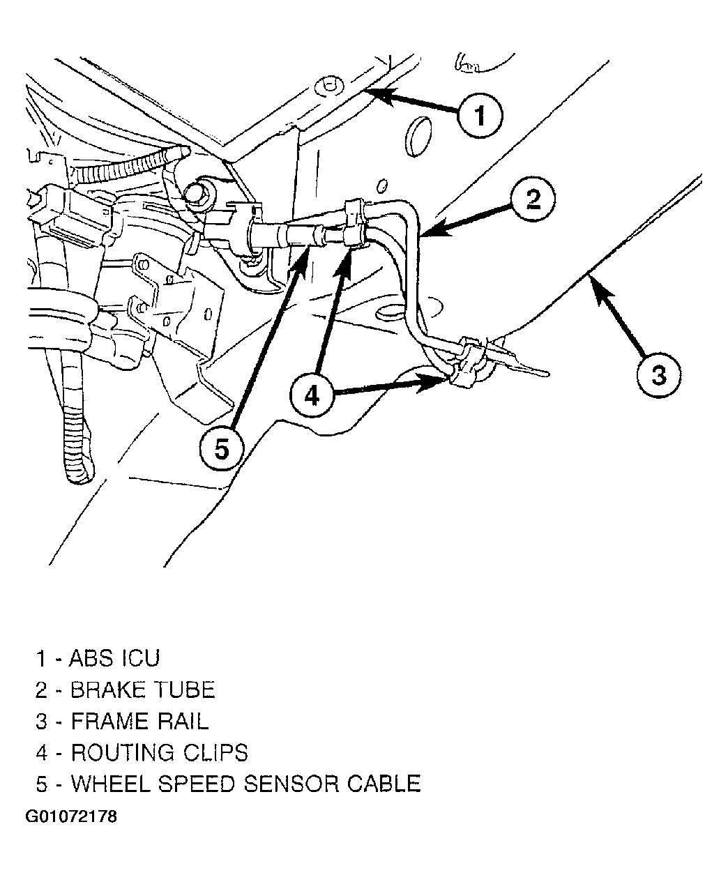 - If the sensor being installed is the left front, clip the speed sensor cable to the brake tube on the inside of and under the frame rail. See Figure .