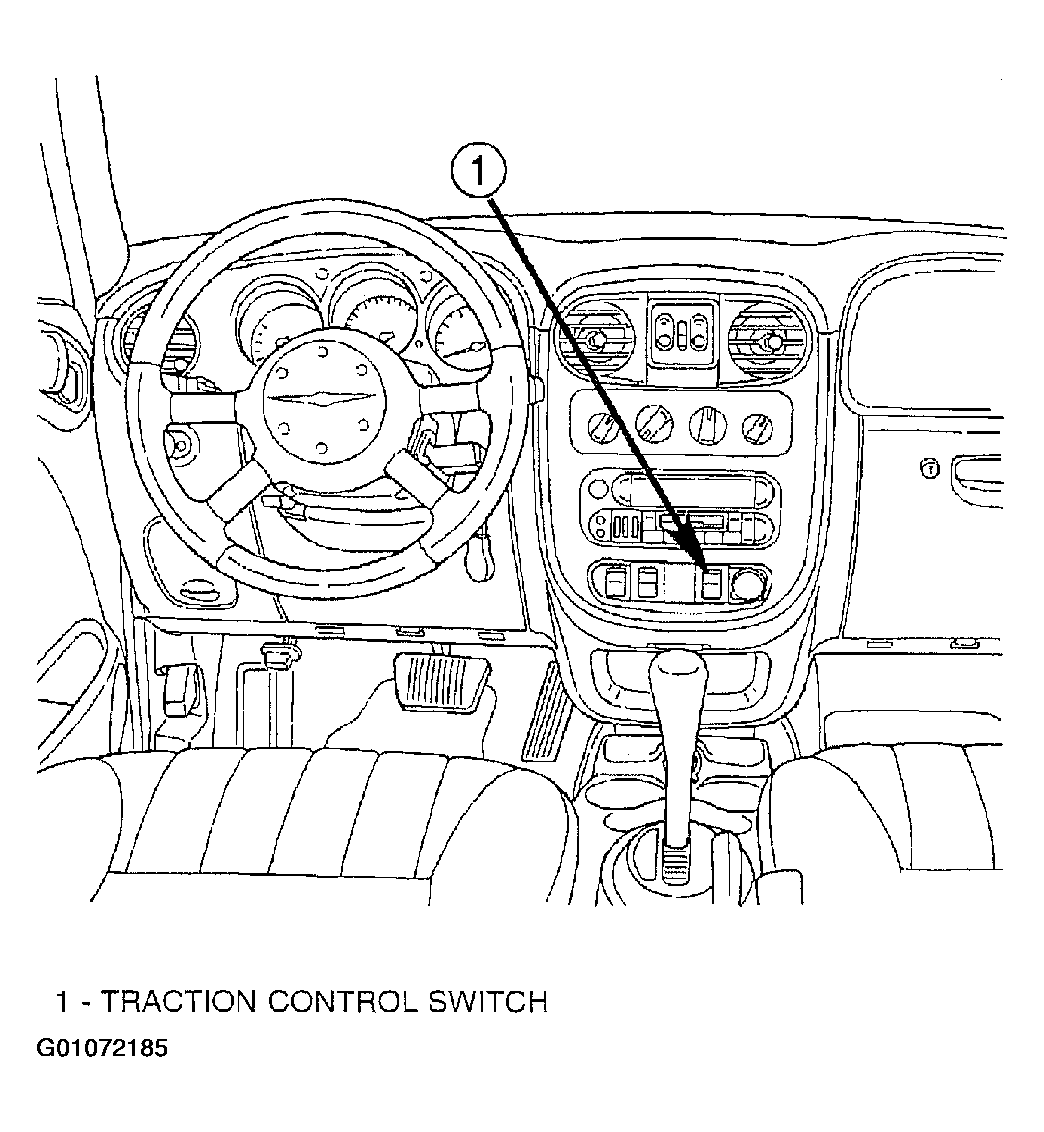 The Traction Control Switch is located within the accessory switch bezel on the instrument panel. See Fig 1