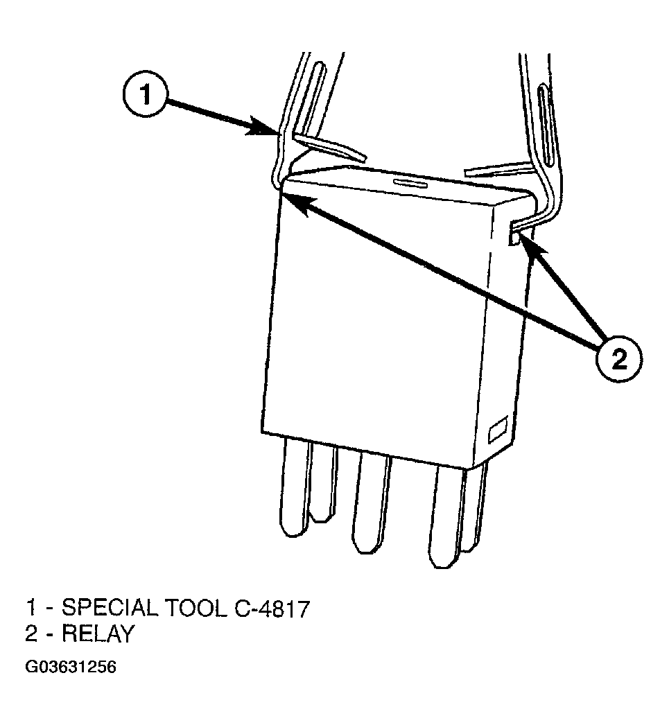 Using special tool C-4817, grip the relay by the sides and pull upward with an even effort (