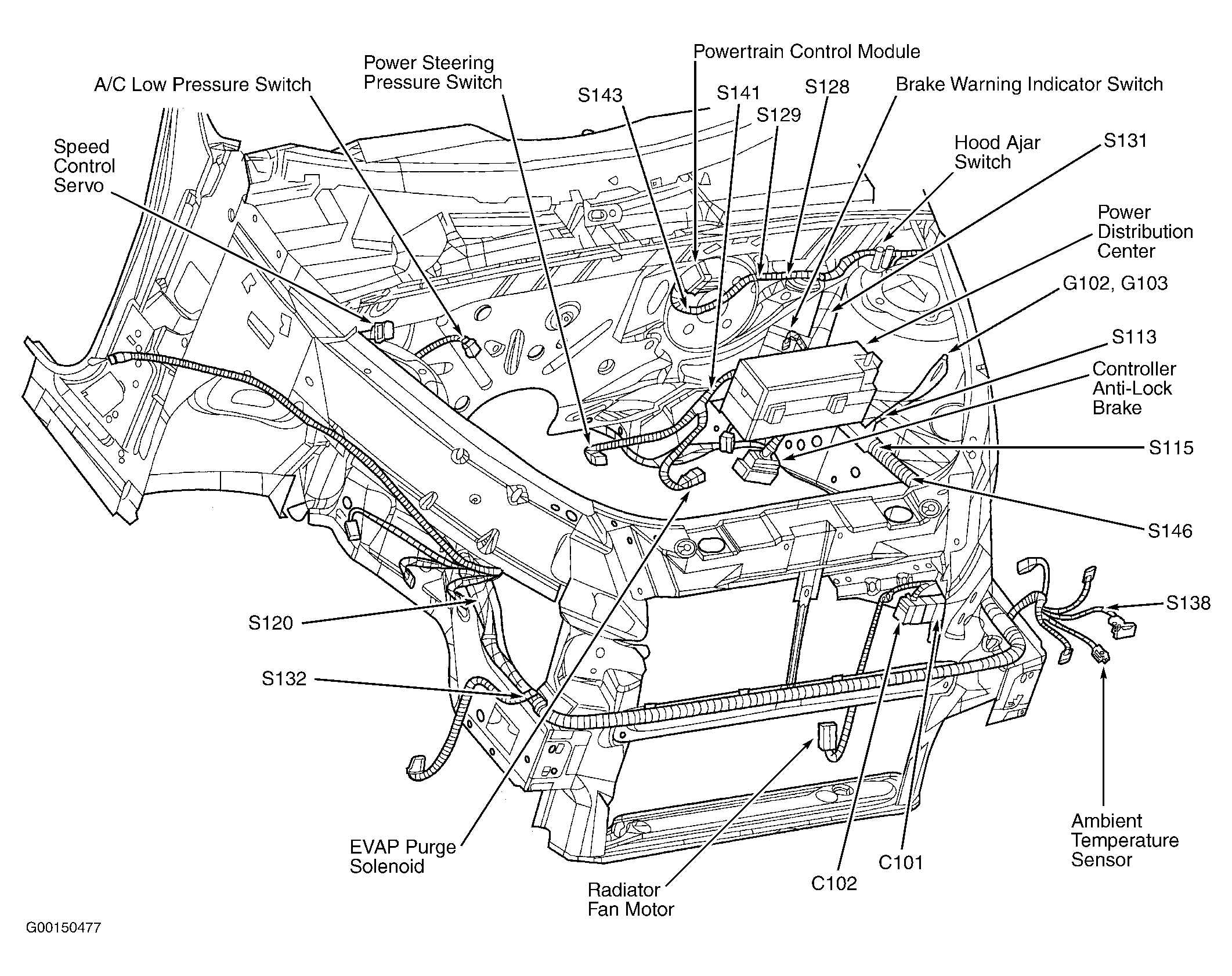 | Controller Anti-Lock Brake | At left side of engine compartment, on bottom of hydraulic control unit. See Figure. |