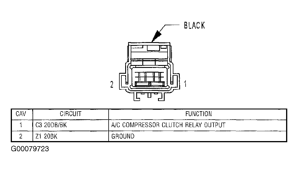 - Turn ignition off. Disconnect A/C clutch connector. Measure resistance between ground and Black wire at A/C clutch harness connector. See Fig 1 . If resistance is less than 5 ohms, go to next step. If resistance is 5 ohms or more, repair open in Black wire between A/C clutch and ground connection G103.