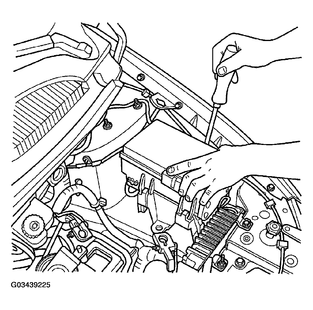 - Free the IPM from its mounting bracket by removing the IPM bracket clips from the hinge. A screwdriver slipped up from under the hinge will free the clips.