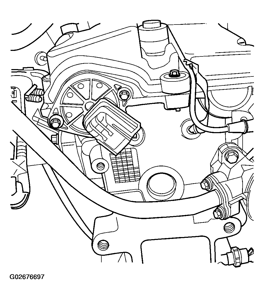 The camshaft position sensor for the 3.3/3.8L is mounted in the front of the timing case cover (Figure ) and the camshaft position sensor for the 2.4L is mounted on the end of the cylinder head (Figure ).