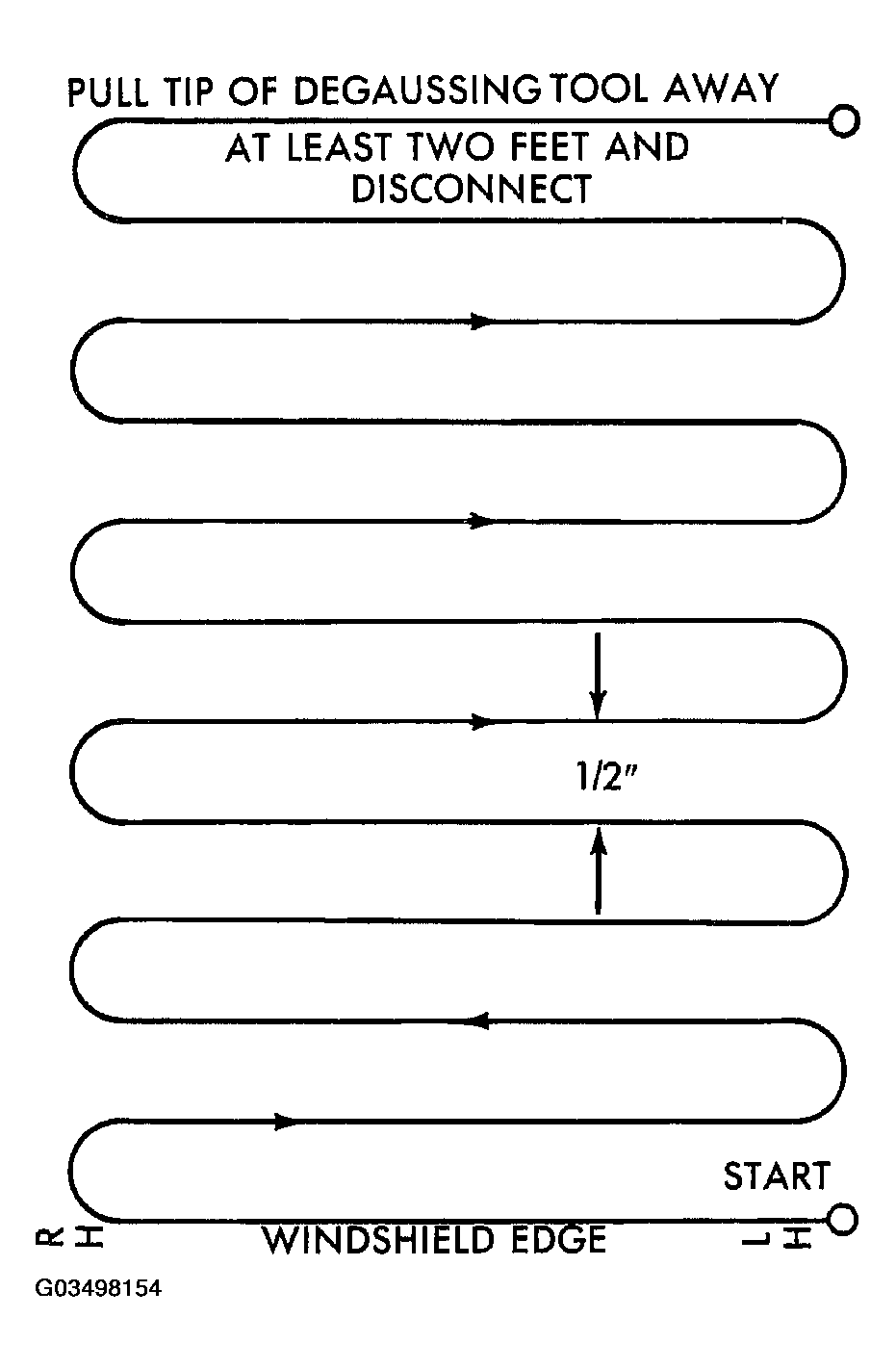 - Slowly approach the center line of the roof panel at the windshield header, with the degaussing tool connected.