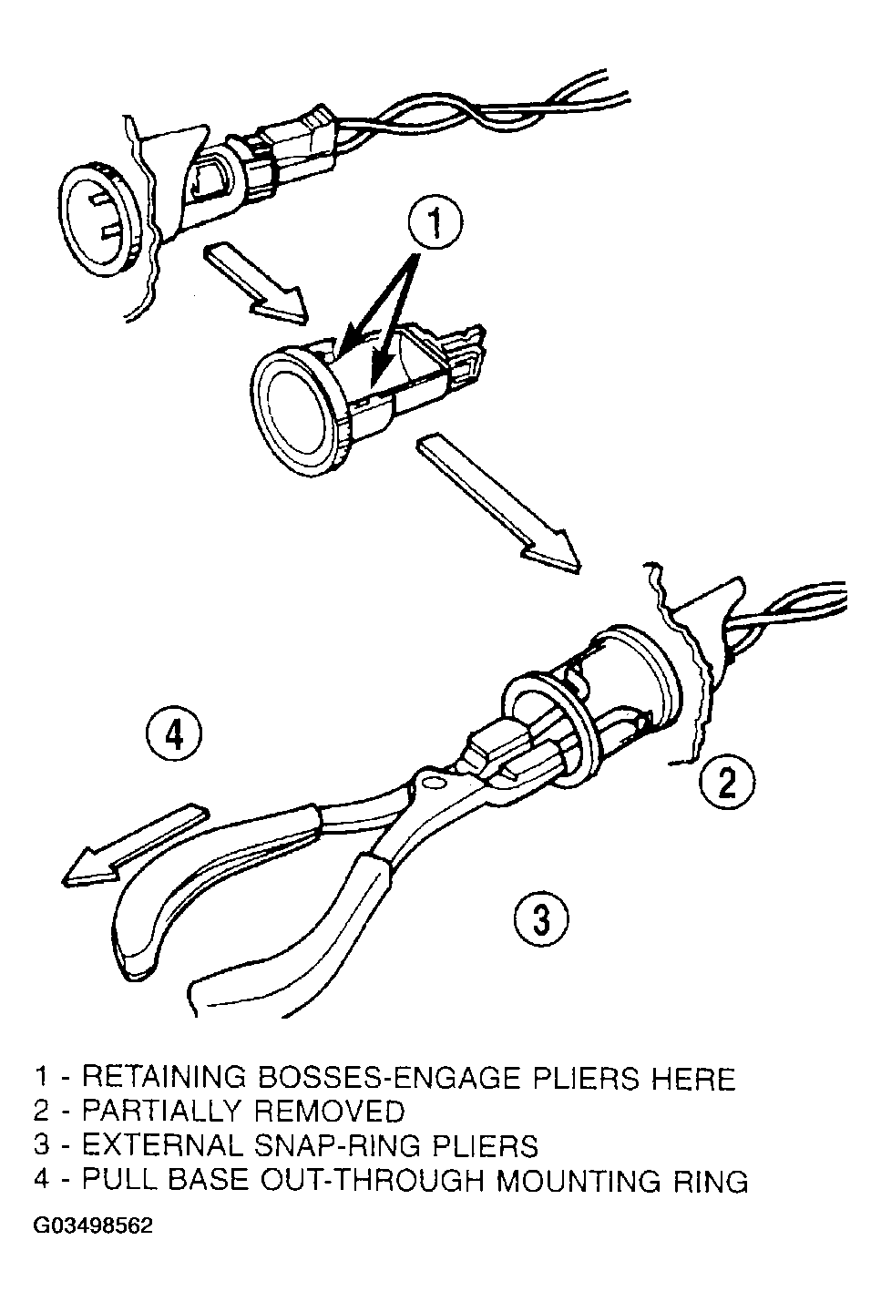 4. Pull out the base through mounting ring by gently rocking pliers. A tool can be made to do the same. Refer to (Fig 2 ).