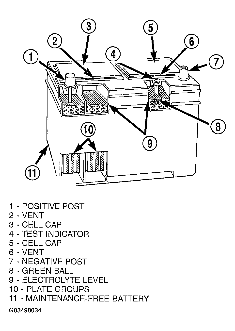 Maintenance-free batteries have non-removable battery vent caps (Fig 1 ). Water cannot be added to this battery. Under normal service the composition of this battery reduces gassing and water loss at normal charge rates. If the battery electrolyte level becomes low, this battery must be replaced.