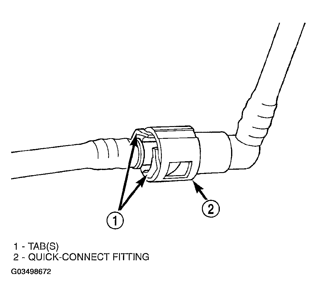 - To disconnect quick-connect fitting, squeeze plastic retainer tabs (Figure) against sides of quick-connect fitting with your fingers. Tool use is not required for removal and may damage plastic retainer. Pull fitting from fuel system component being serviced. The plastic retainer will remain on component being serviced after fitting is disconnected. The O-rings and spacer will remain in quick-connect fitting connector body.
