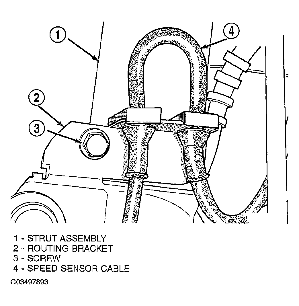 - If the vehicle is equipped with antilock brakes. Install the front speed sensor cable routing bracket onto the front strut assembly (Figure ).