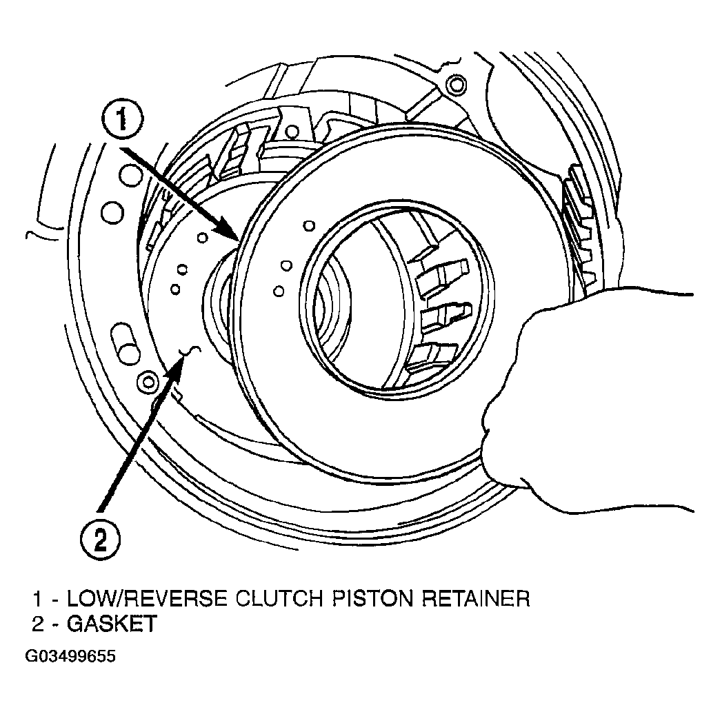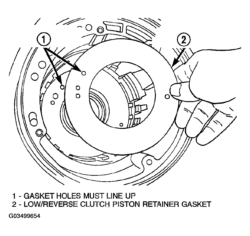 - Install low/reverse piston retainer gasket (Fig 2 ).