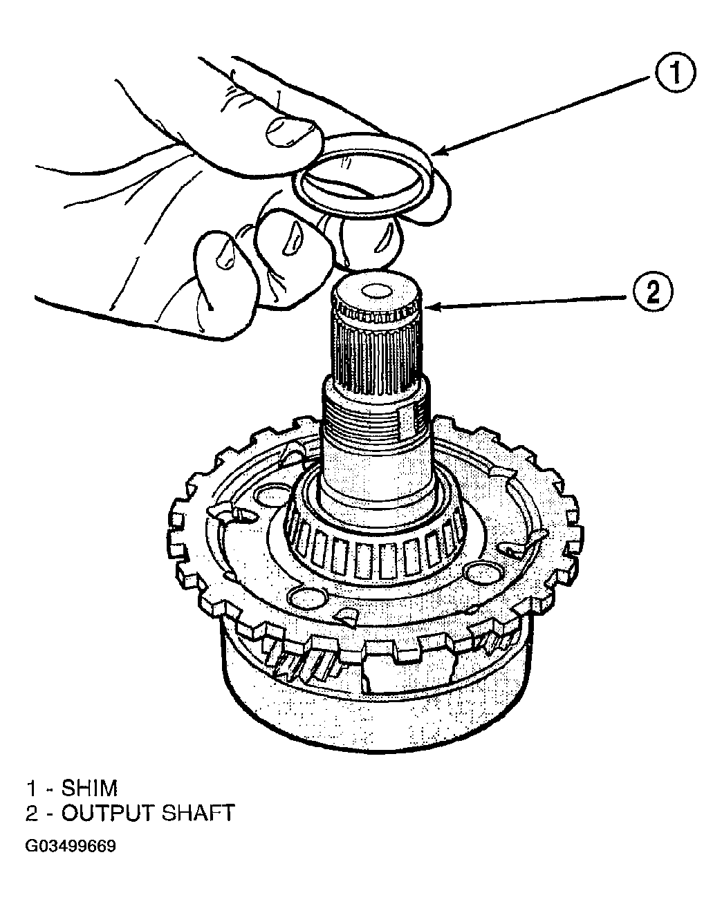 - Install shim on output shaft (Fig 17 ). Apply small amount of petrolatum onto the shim to hold it in place. Use the original shim as a starting point. If original shim is not available, use the thickest shim available. Refer to Output Shaft Rear Shim Chart for available sizes .
