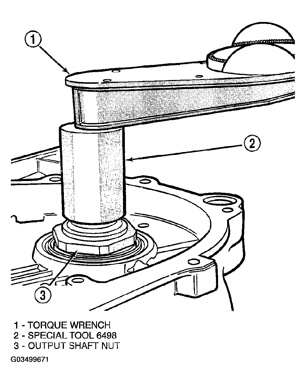 - Do not re-use old transfer shaft nut or output shaft nut because the removed stake weakens the nut flange . Using special tools 6497 and 6498, install new output shaft nut. Do not reuse old output shaft nut. Tighten new output shaft nut to 271 N.m (200 ft. lbs.).
