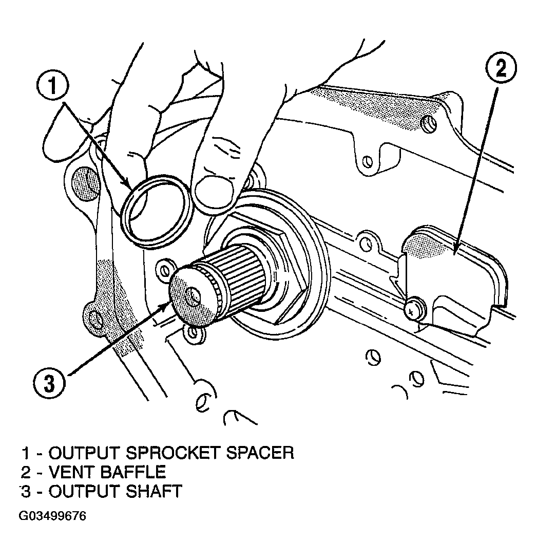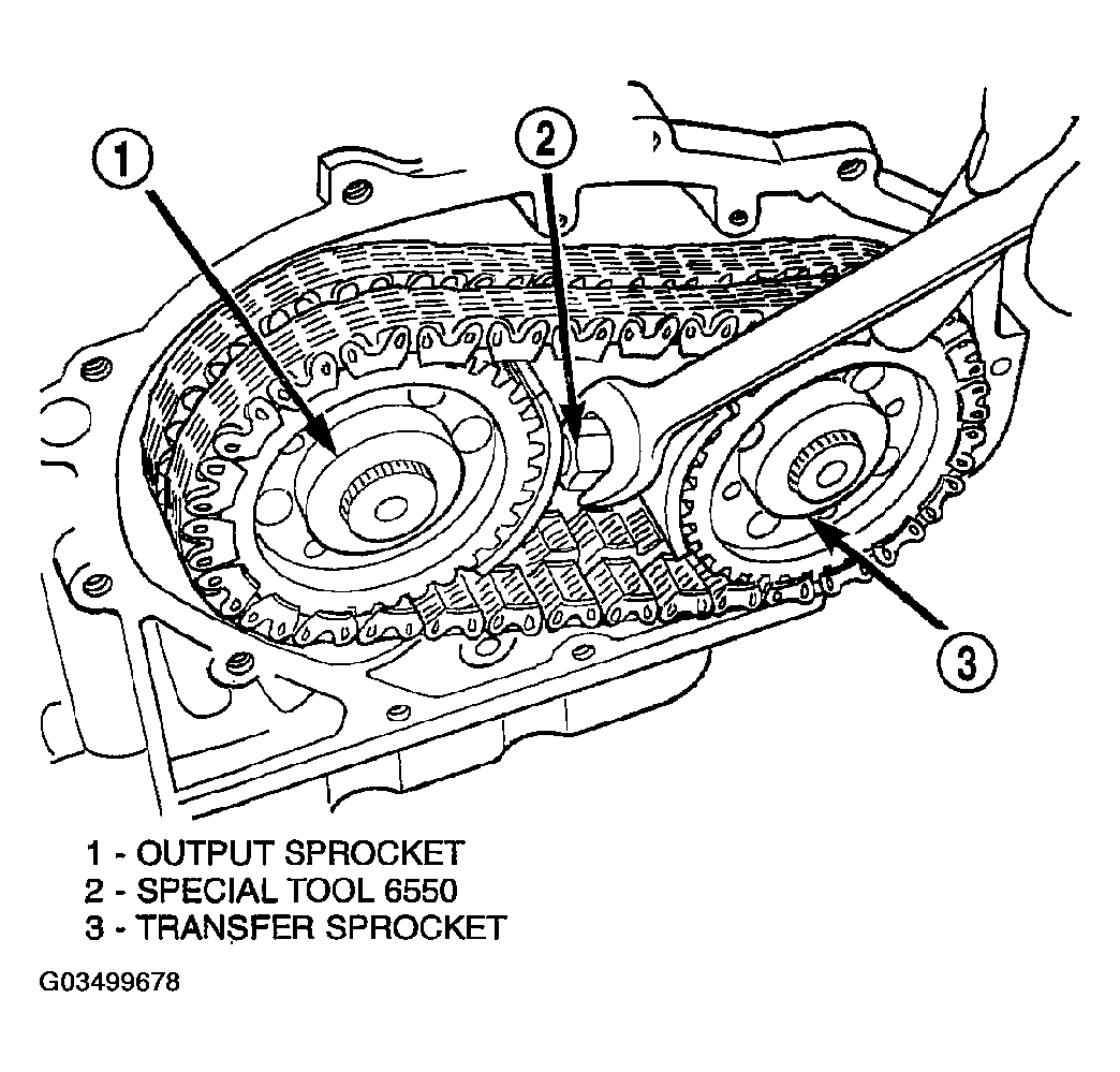 - Install transfer chain and sprockets to transfer shaft and output shaft (Fig 25 ).