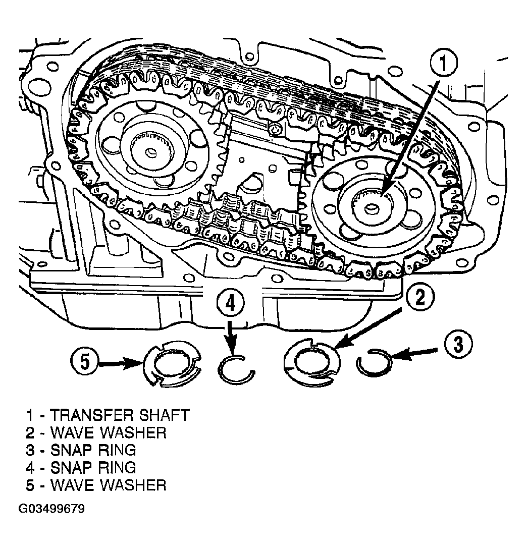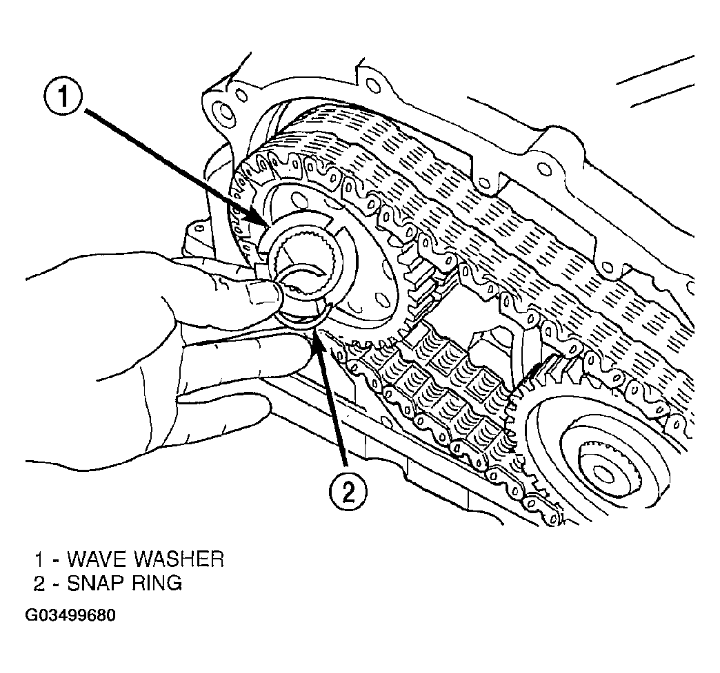 - Install transfer shaft sprocket snap rings and wave washers (Fig 27