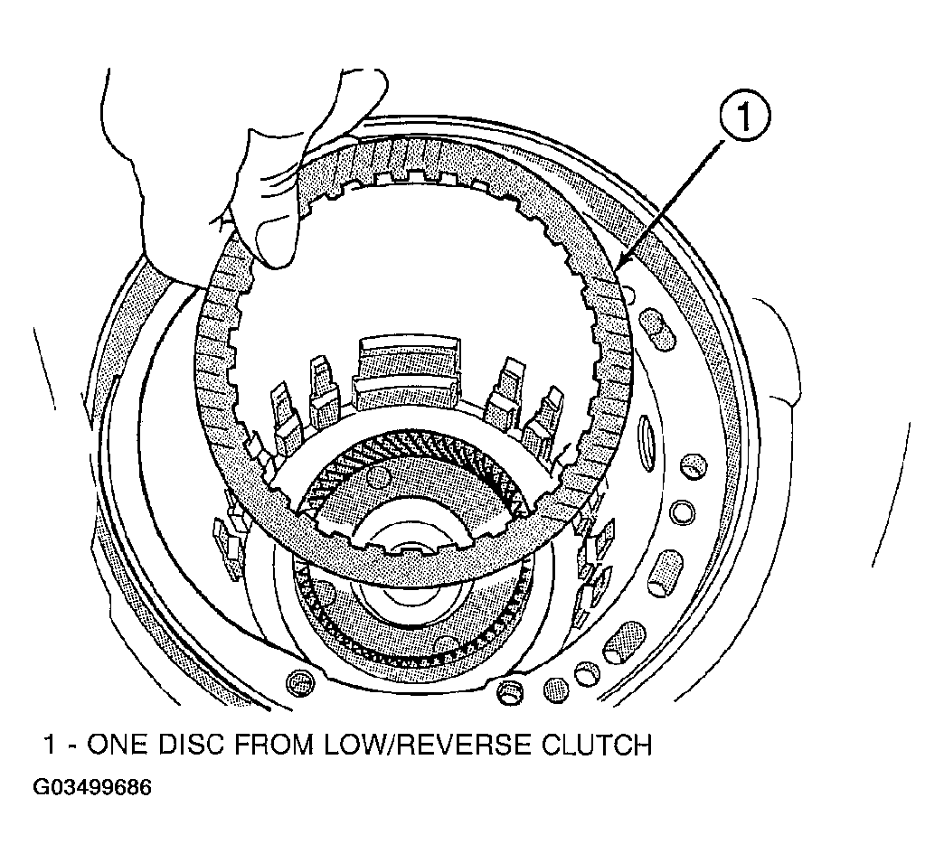 - Install low/reverse clutch pack (Fig 32 ). Leave uppermost disc out to facilitate snap ring installation.