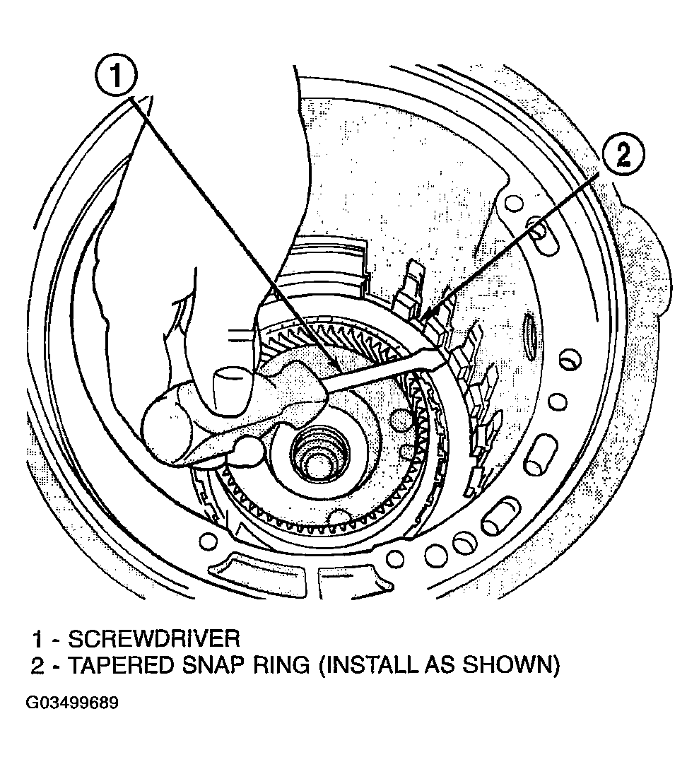- Install tapered snap ring (tapered side out) as shown in (Fig 36 ) (Fig 37 ).