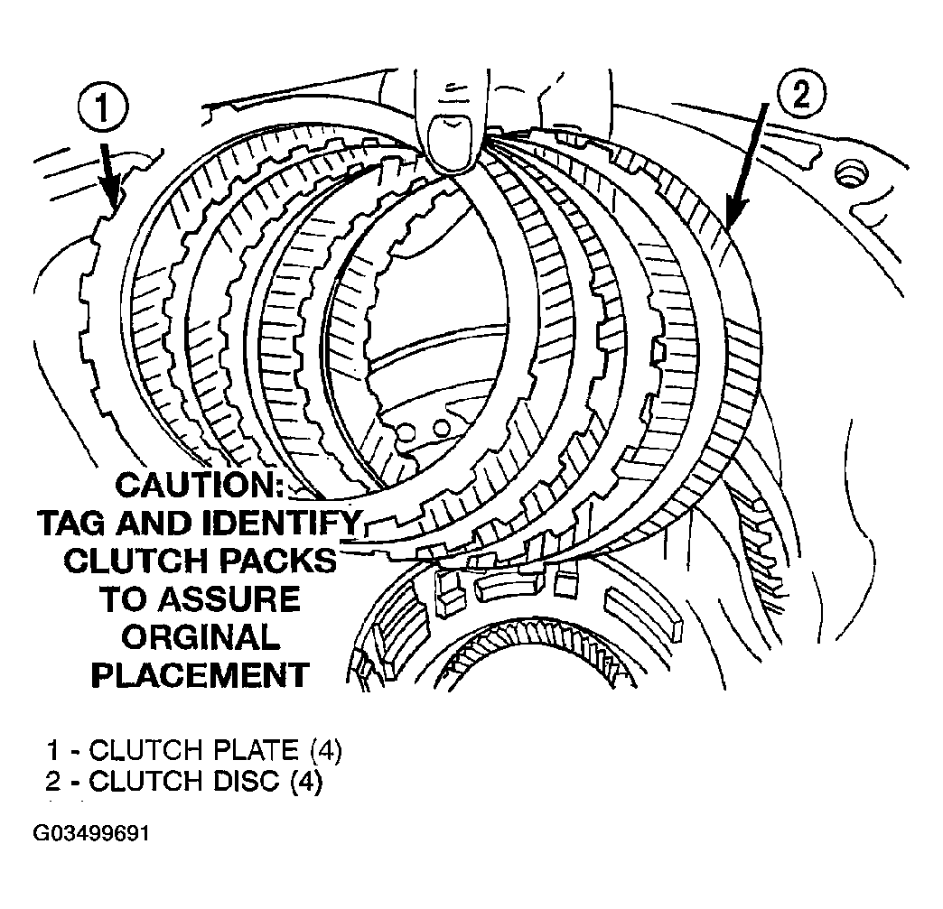 PART NUMBER THICKNESS 4799846AA 5.88 mm (.232 in.) 4799847AA 6.14 mm (.242 in.) 4799848AA 6.40 mm (.252 in.) 4799849AA 6.66 mm (.262 in.) 4799855AA 6.92 mm (.273 in.) - Install 2/4 clutch pack (Fig 39