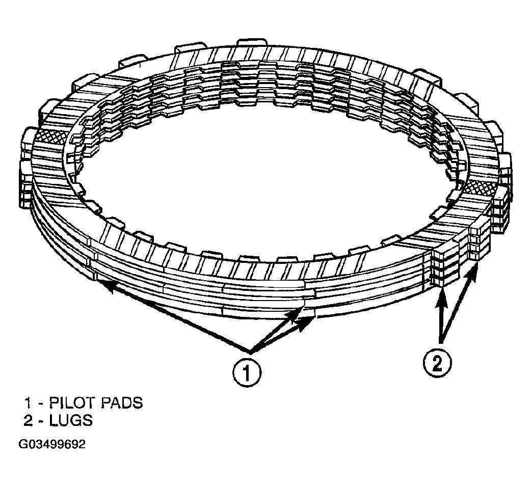 NOTE: When installing the 2-4 clutch plates and discs, the orientation should be alternated so the pilot pads of adjacent plates do not align, refer to (Fig 40 ).