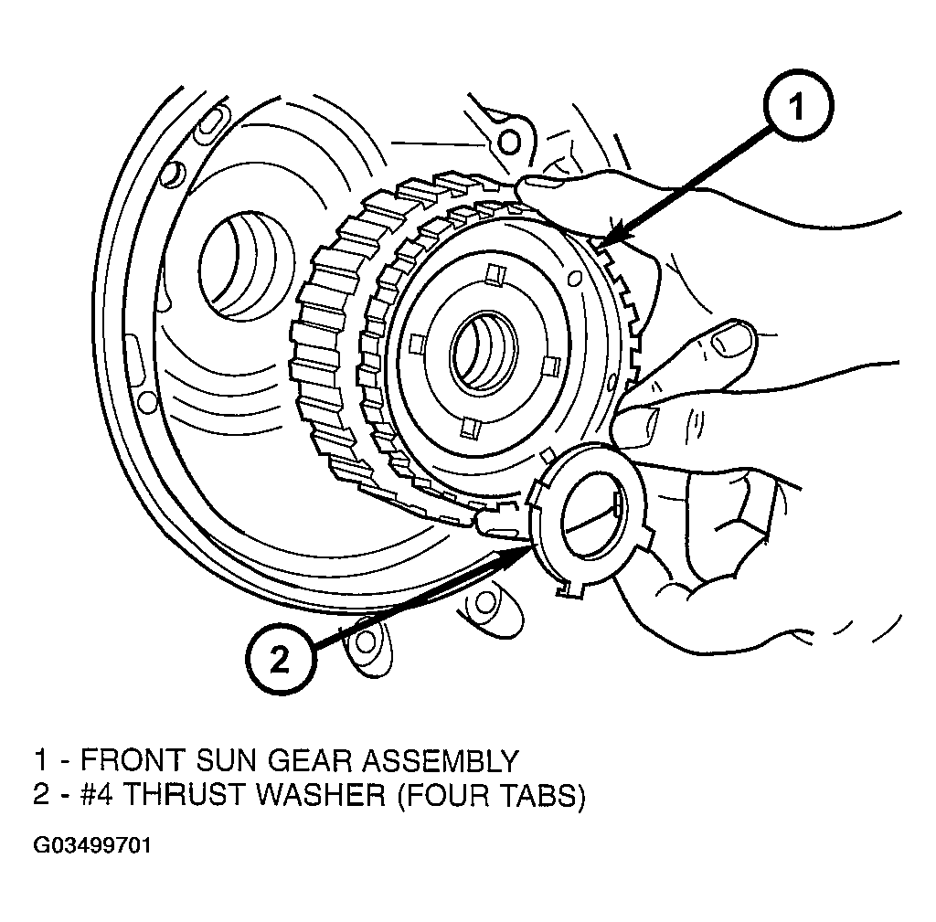- Install front sun gear assembly and #4 thrust washer (Fig 49 ).