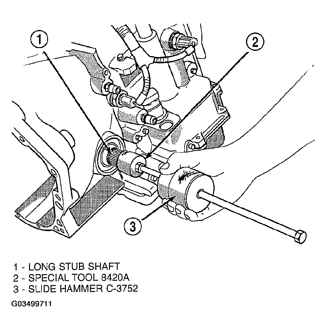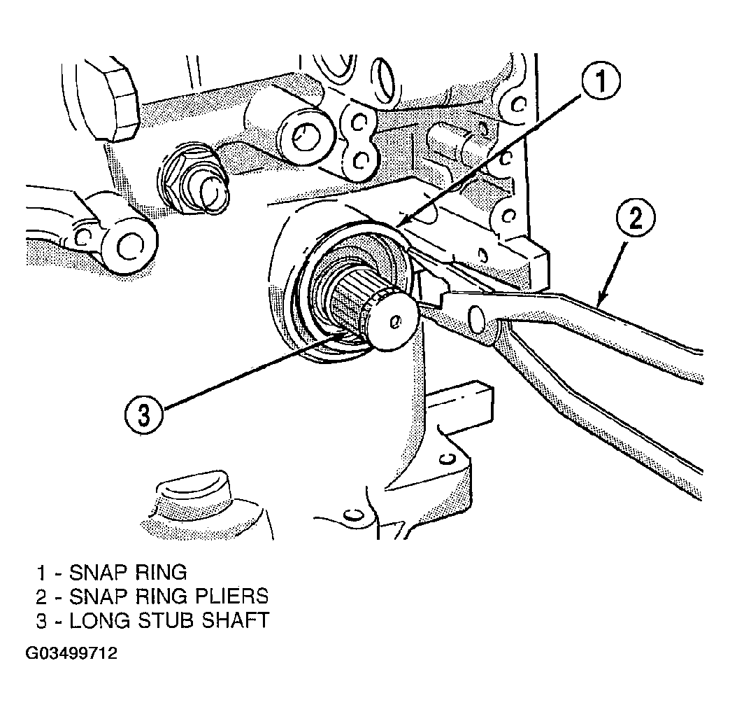 - Install long stub shaft bearing retaining snap ring (Fig 60 ). Replace halfshaft retainer clips.