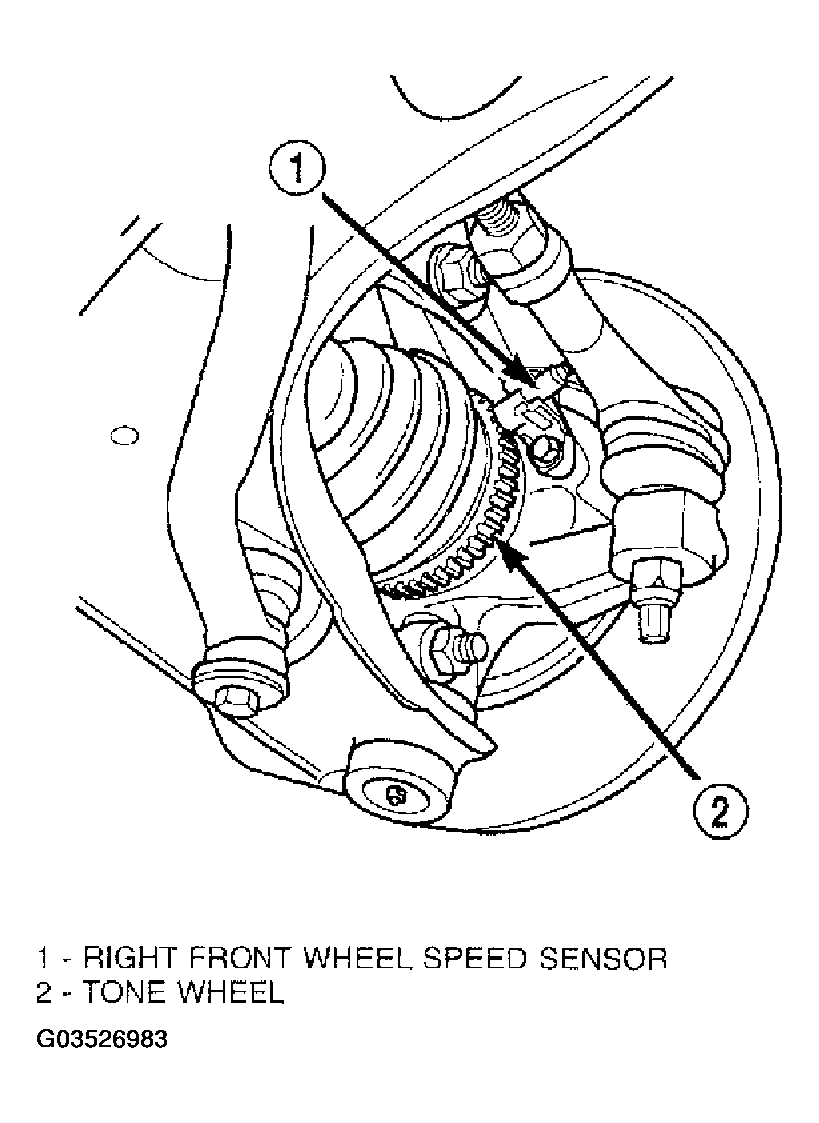 - Install the wheel speed sensor head in the steering knuckle (Figure ). Install the mounting bolt. Tighten the mounting bolt to a torque of 12 N.m (105 in. lbs.).
