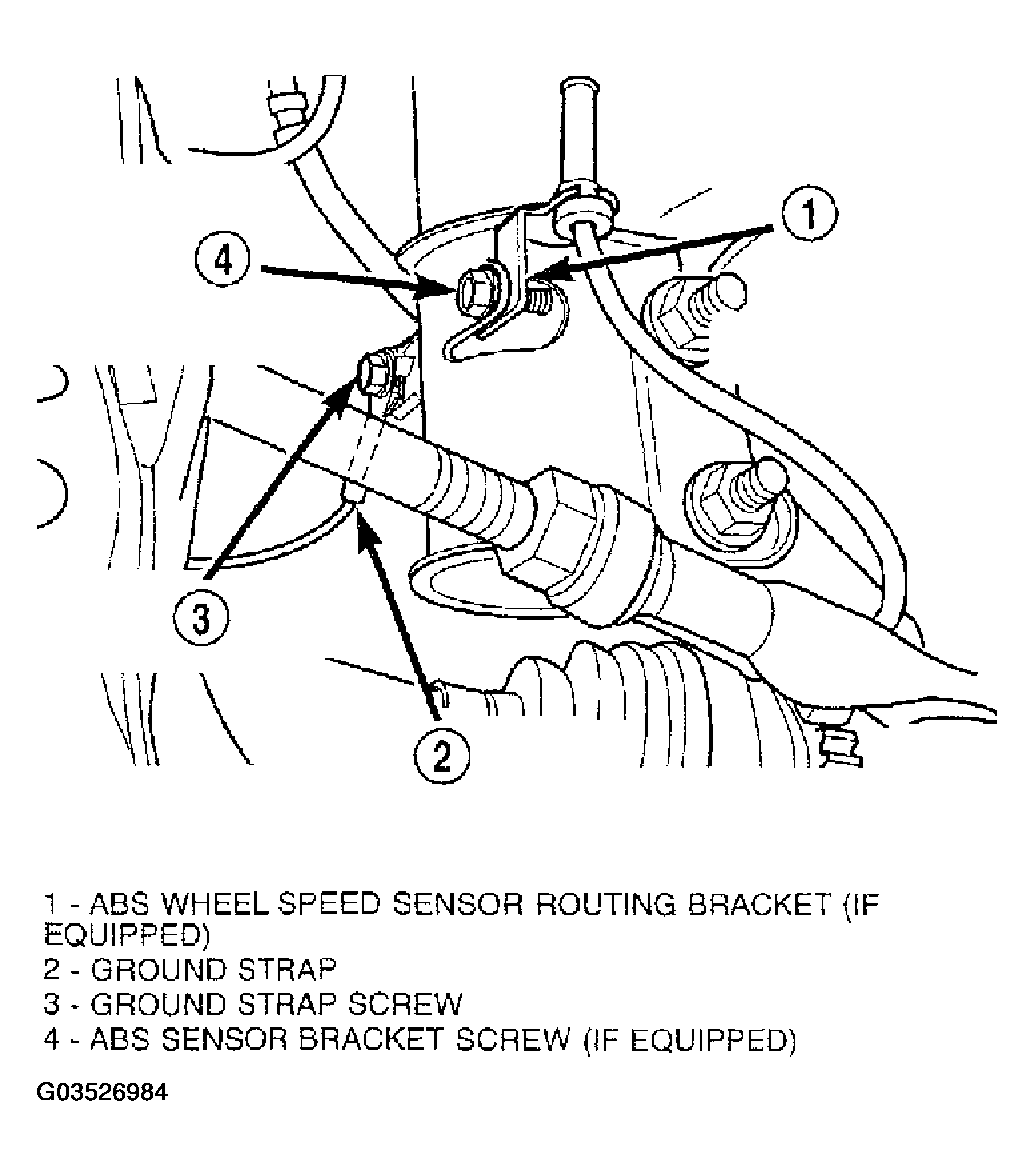 - From the sensor bracket on the strut, loop the sensor cable upward, then downward at the outside of the frame rail. Install the speed sensor cable grommet onto the retaining bracket attached to the brake hose on the outside of the frame rail.