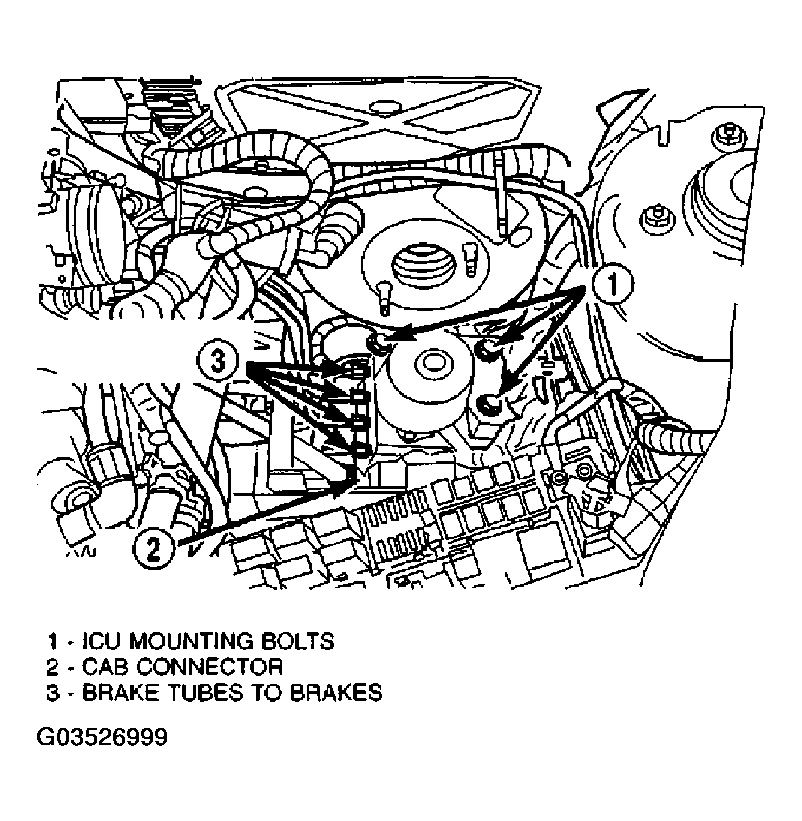 - Install the four brake tubes going to the brakes into their respective outlet ports on the ICU HCU (Figure ). Using a crow foot on a torque wrench, tighten the four brake tube nuts to a torque of 17 N.m (145 in. lbs.).