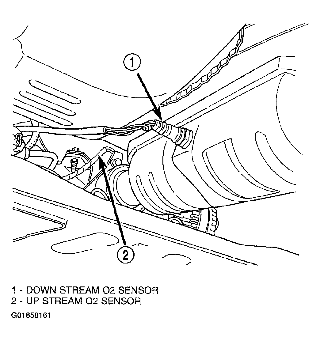 The downstream heated oxygen sensor threads into the exhaust pipe behind the catalytic convertor. See Figure.