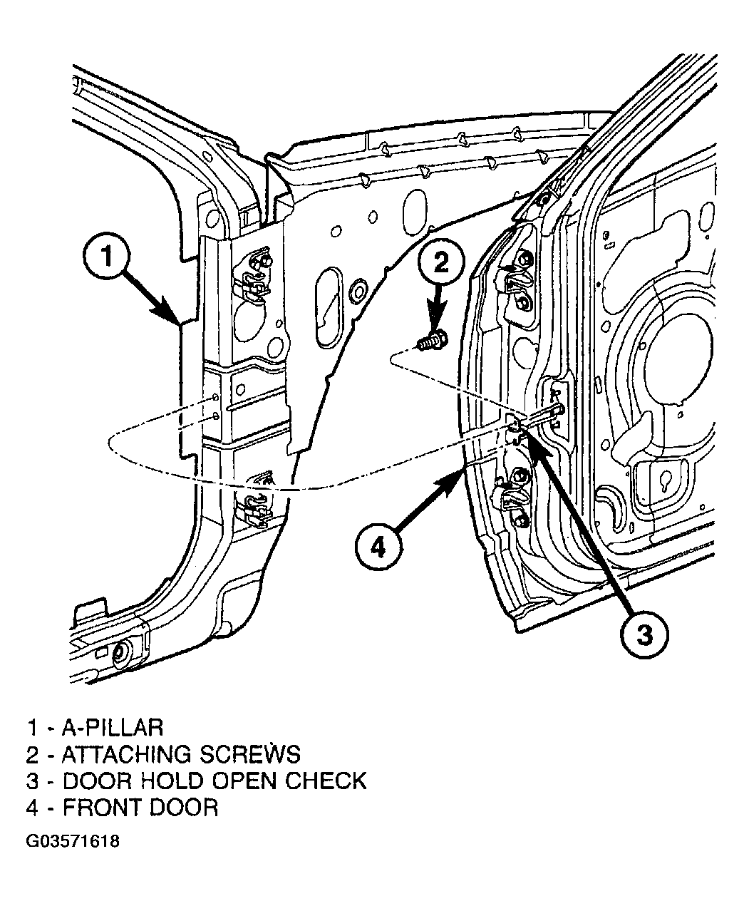 - Install screws attaching check strap to A-pillar (Figure ). Tighten screws to 12 N.m (105 in. lbs.) torque.