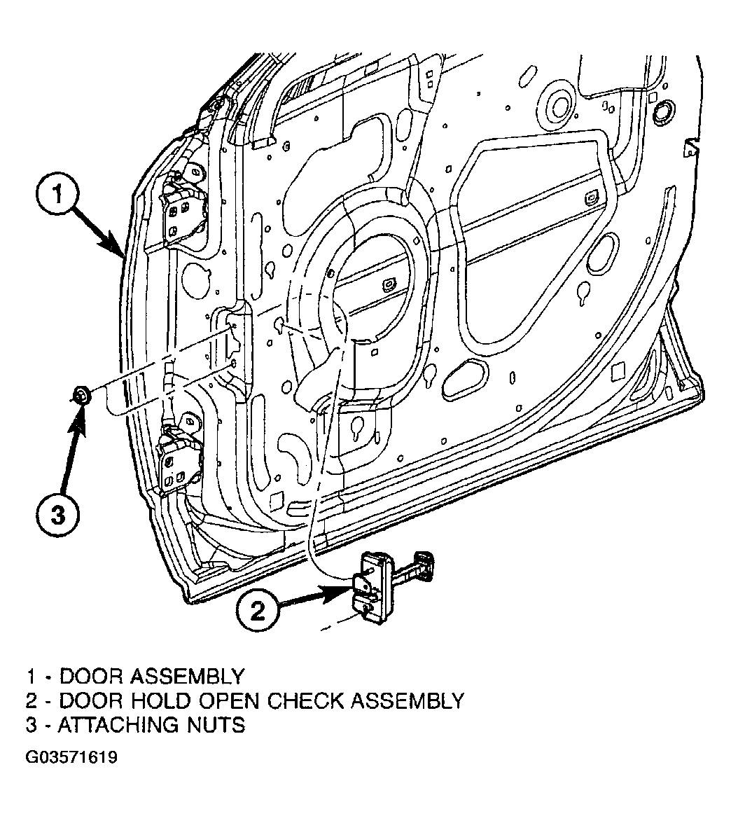 - Install nuts attaching check strap to door end frame. Tighten nuts to 11 N.m (90 in. lbs.) torque.
