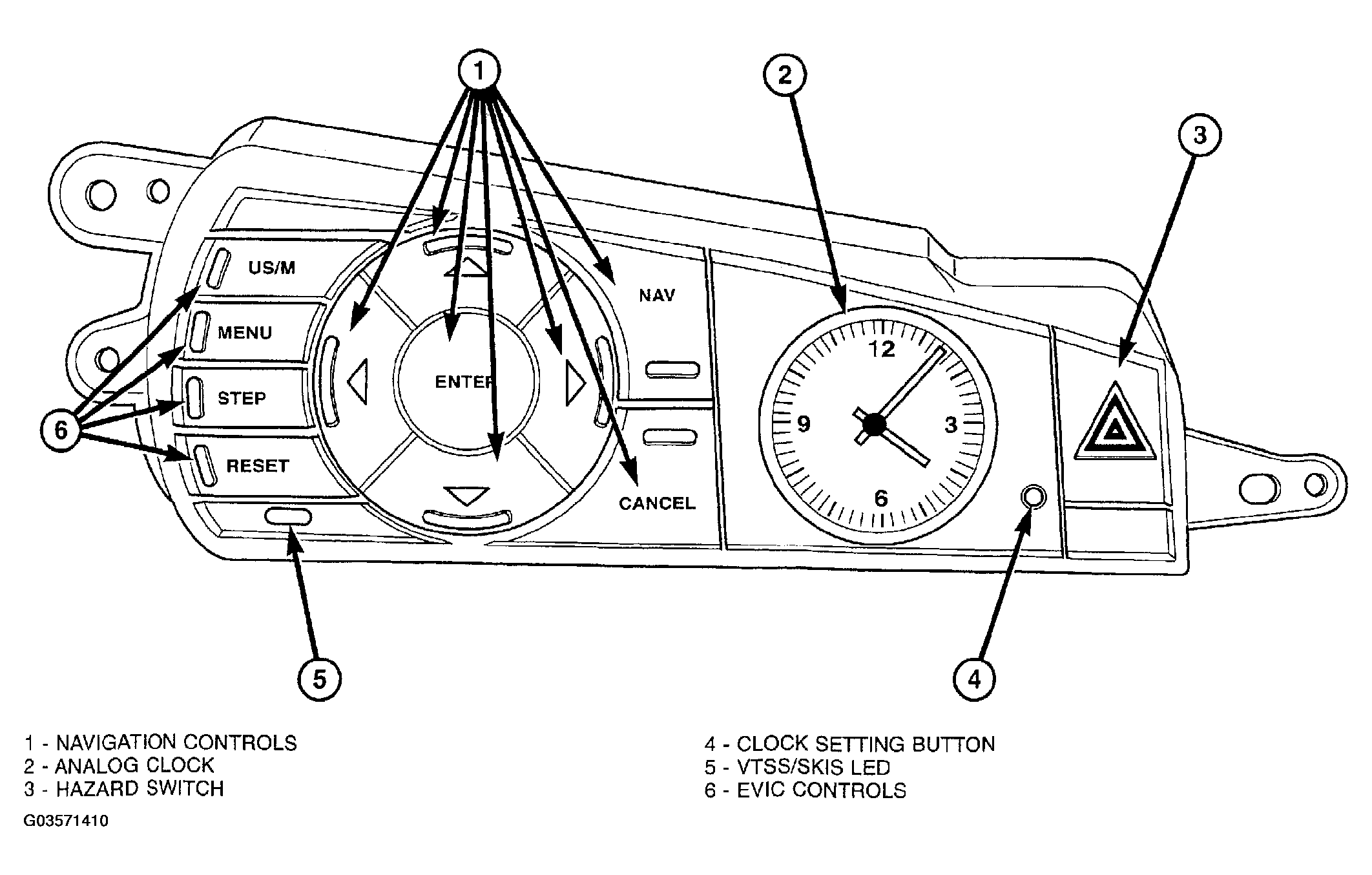 To set the analog clock, at the top center of the instrument panel, press and hold the button (Fig 1 ) until the setting is correct.